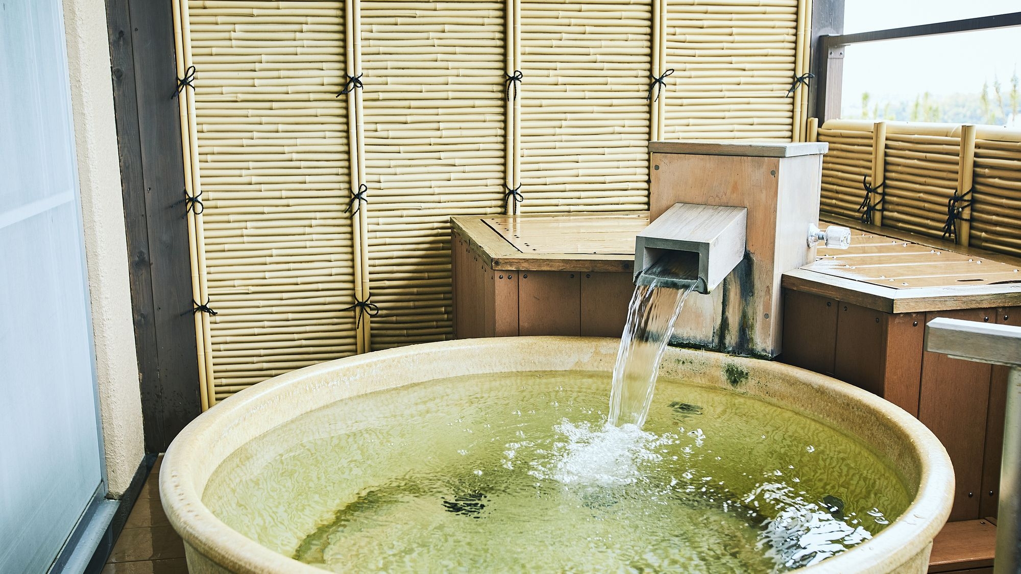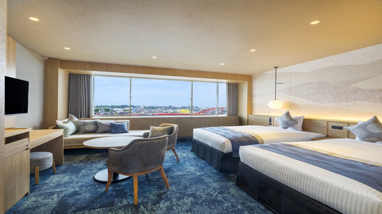 2025年リニューアル!リバービューの天然温泉露天風呂付きのお部屋です。大洗らしい水辺の景色と温泉をゆっくりとお楽しみください