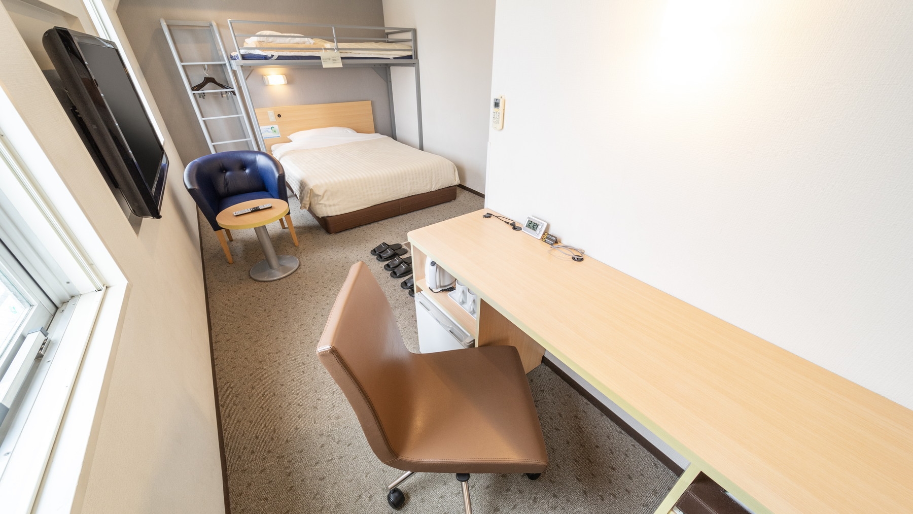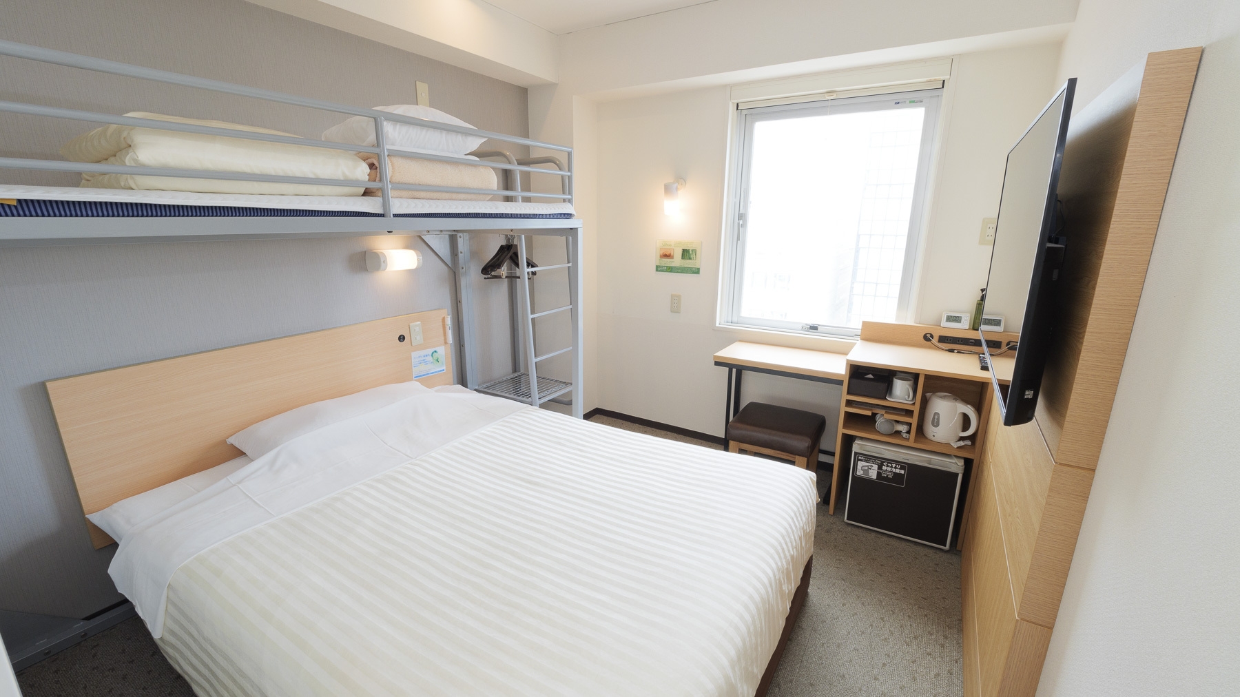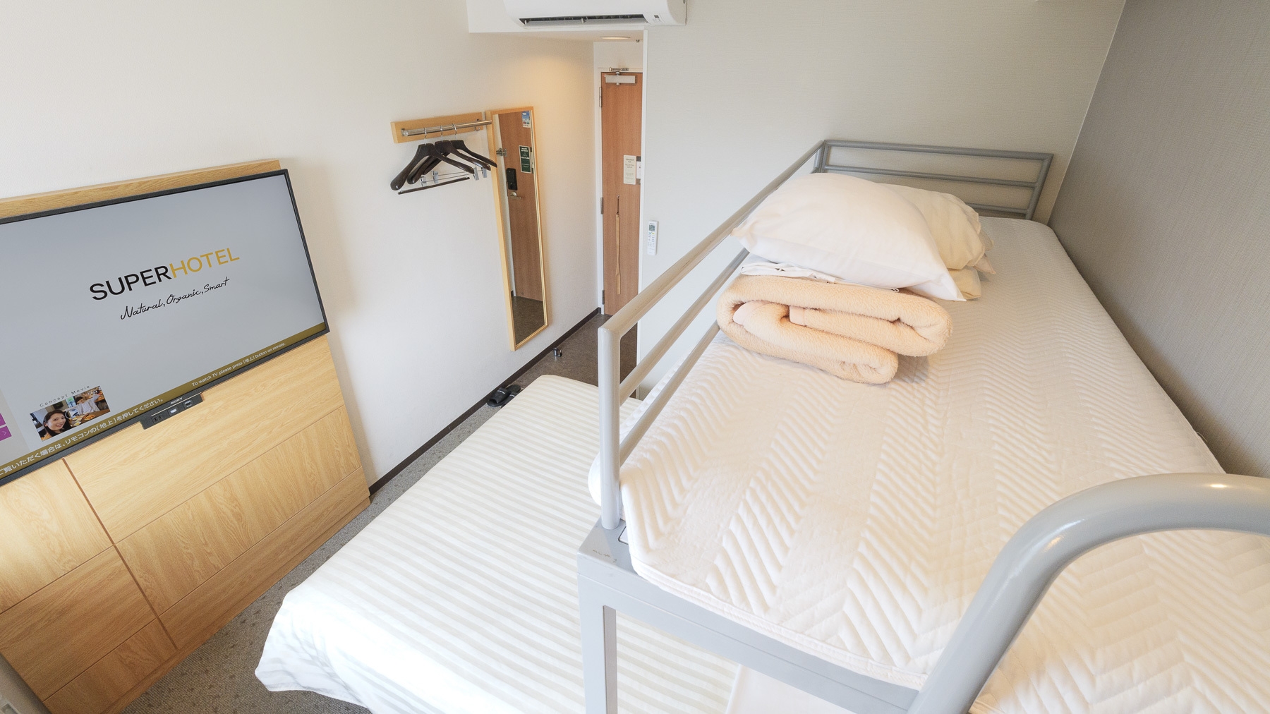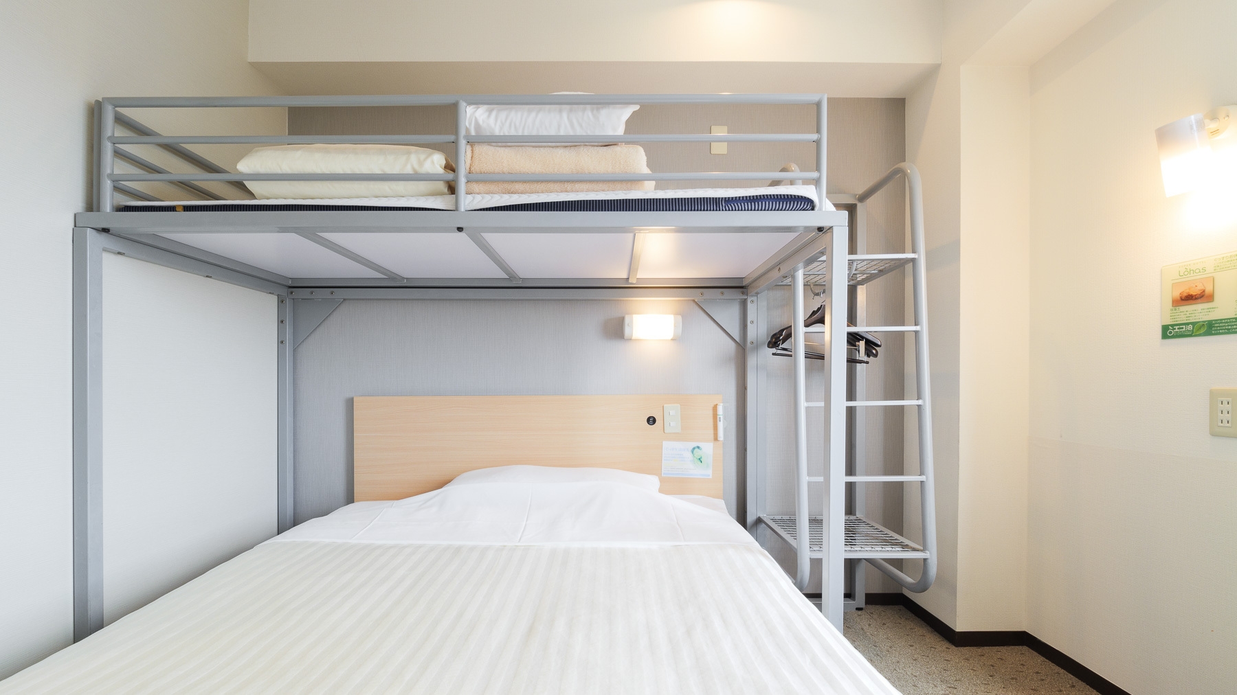 ダブルサイズのワイドベッドとお子様に人気のロフトベッド付の【スーパールーム】です。 ご家族にお勧めです。
