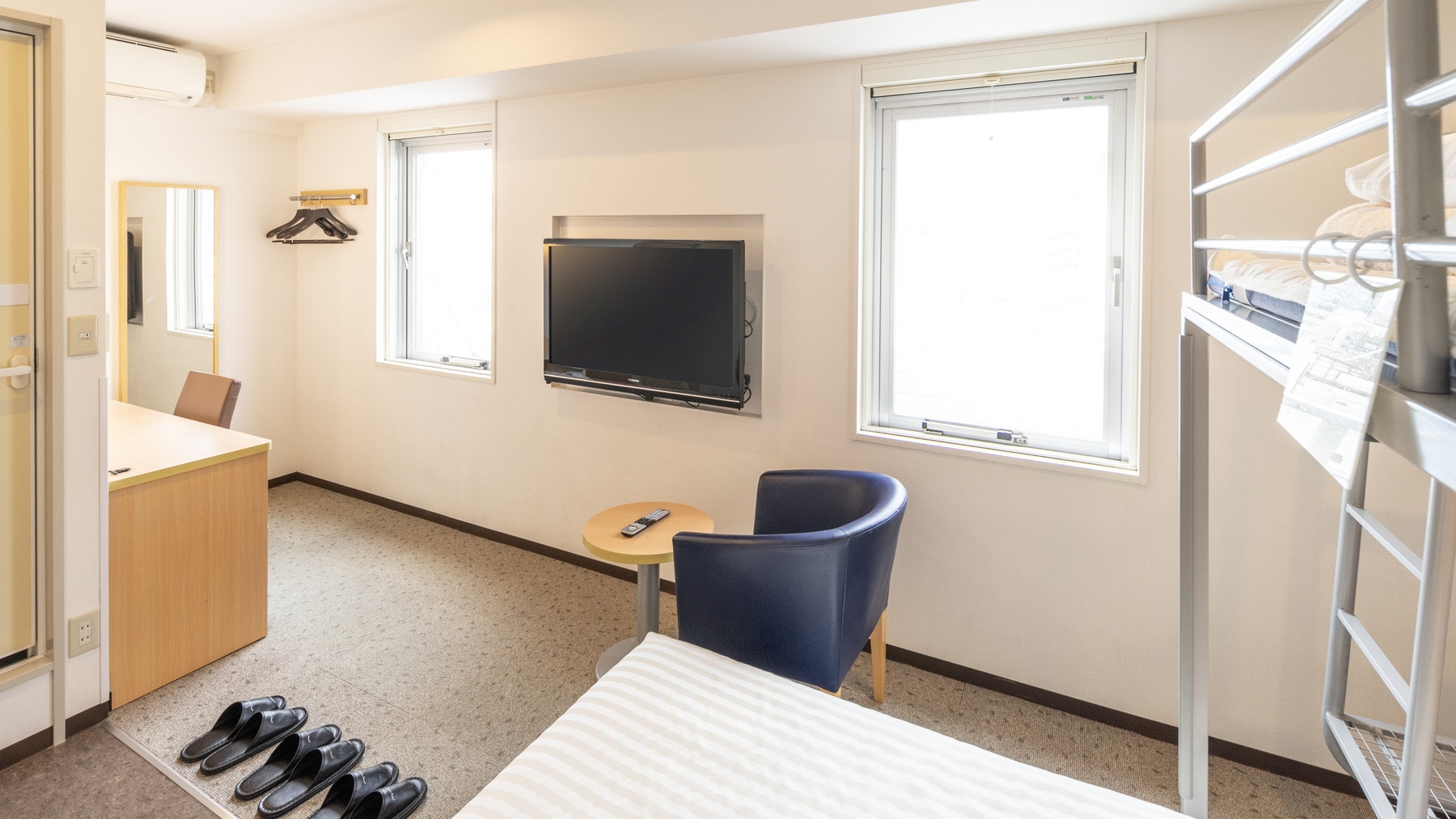 定員3名までお泊り頂けるお部屋です。 150cm幅のダブルベッドに、90cm幅のロフトベッドが1台あるお部屋で、ご家族などにお勧めです。