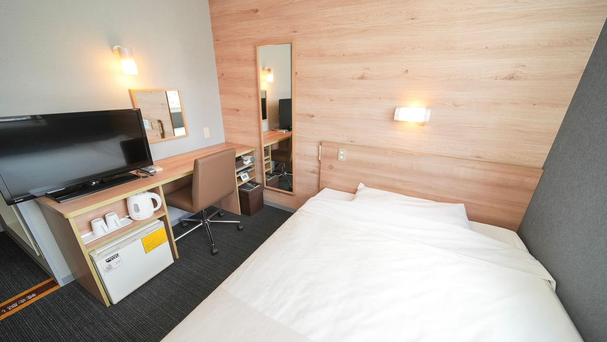 スーパーホテルで最もスタンダードなお部屋である【スタンダードルーム】です。 150cm幅のダブルサイズのワイドベッドでぐっすりお休み下さい。