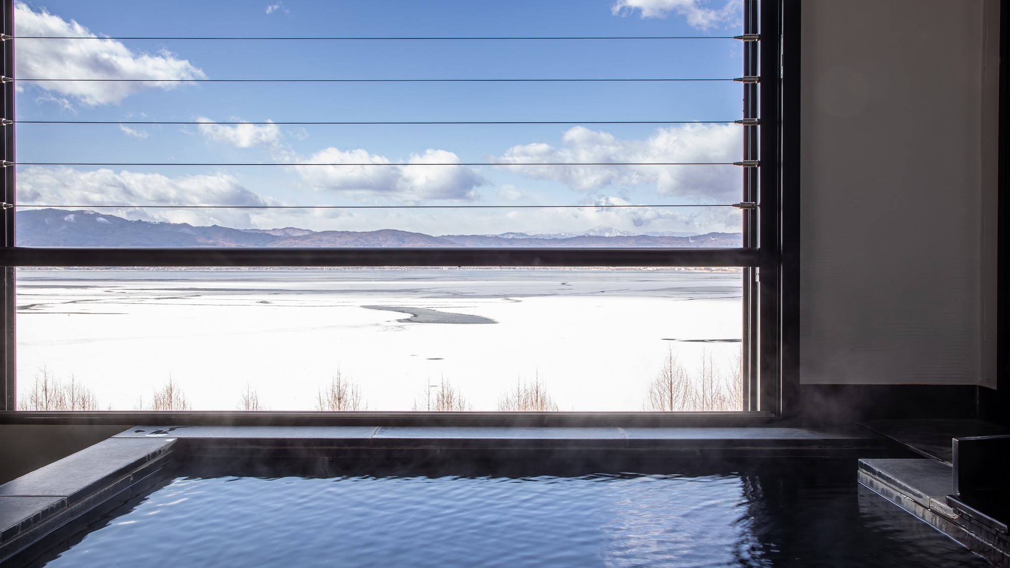 露天風呂付客室スイートルーム【美湖の雫】プランお部屋の露天風呂で清らかな源泉に抱かれながら、眼下に広がる諏訪湖を一望いただけます。上質な装飾を施した和モダンのお部屋は段差がない等の使いやすさにも配慮しました。時の移り変わりとともに刻々と変わる諏訪湖を眺めながら、贅沢な癒しの時間をお過ごしください。※7階スイートは、お部屋までに段差がございます。車椅子利用のお客様は6階スイートまたは5階セミスイートをご予約ください。※お客様の安全の為、露天風呂の窓際に柵もしくは転落防止ワイヤーを設置しております。■内容・特典■・露天風呂付き客室のご利用・朝夕個室料亭で個室食 ・諏訪大社4社を巡る無料参拝バス(事前予約制《3日前まで》)・館内着をご用意・就寝用パジャマをご用意 ・環境に配慮したアメニティをご用意・館内フリーWi-Fi ・駐車場完備・チェックイン15時、チェックアウト10時【お食事】・朝夕個室料亭で個室食 ・夕食は地産地消の創作和会席「美湖膳」(二十四節気という昔の暦による料理表現)・朝食はこだわりのお漬物バーはじめとした和定食 ※お子様のお食事およびアレルギー等の対応は、「注意事項」をご確認ください。【温泉】自家源泉「美翠源泉」は酸化の進みが遅く新鮮で若返りの効果が高い、極めて希有な源泉です。身も心も癒されるご入浴をお愉しみください。・お座敷風呂(大浴場) 温泉の成分に合わせ、防菌防カビの特殊素材の畳を使用。 足元が柔らかく、そして滑りにくい畳のお風呂です。・貸切温泉風呂 (40分2000円) 眺望はございませんが、源泉掛け流しの温泉の質を楽しむ貸切温泉風呂です。 ゆったりといやされるプライベートな空間をお愉しみください。【旅】・諏訪大社4社を巡る無料参拝バス 豊富な知識を持ったドライバー兼ガイドが諏訪大社をご案内します。 事前ご予約制ですので、ご利用ご希望のお客様は【3日前まで】にお電話ください。 ※交通規制などにより運行できない日がございます ※年末年始及び御柱祭前後は運行しておりません