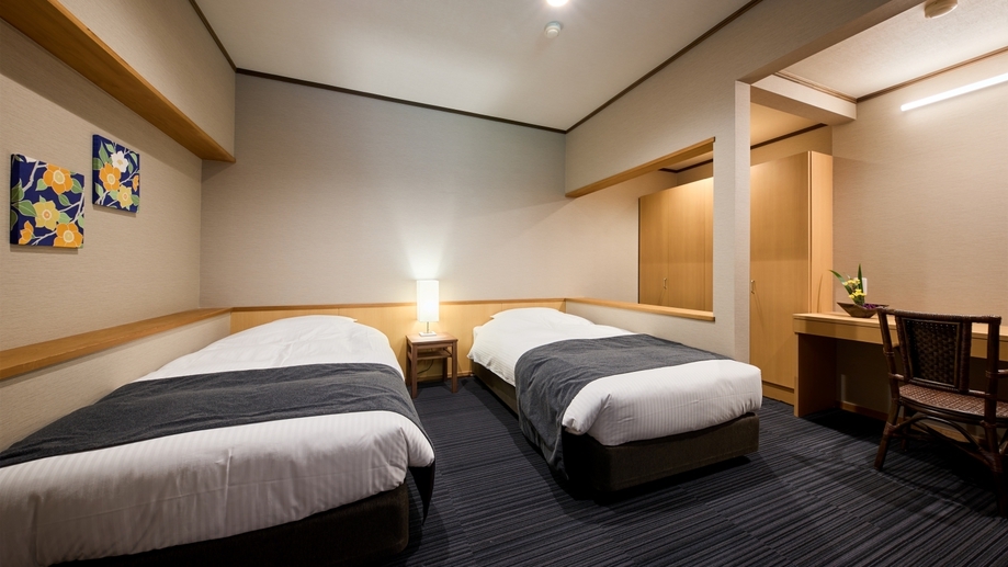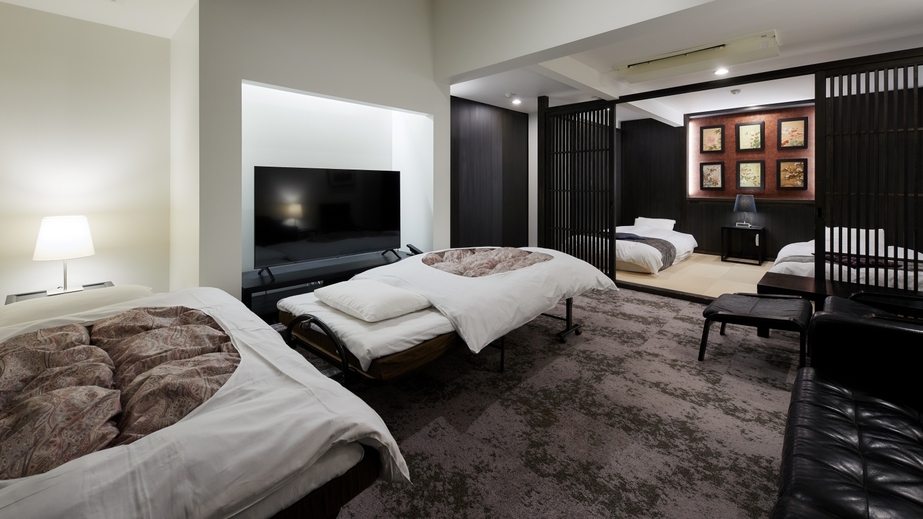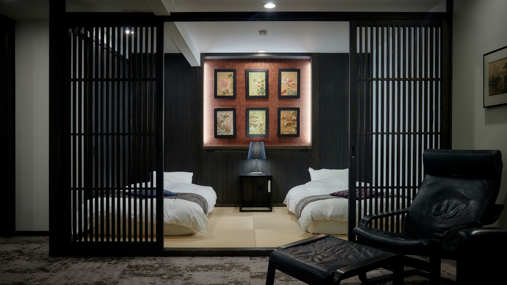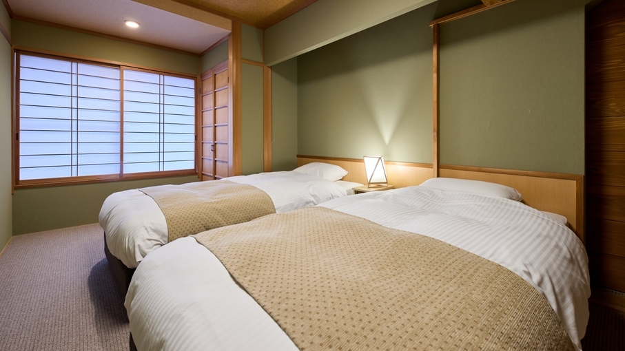 2022年11月リニューアル!ツインルーム+ツインルーム+リビング+源泉かけ流し半露天風呂を備えたお部屋【禁煙】