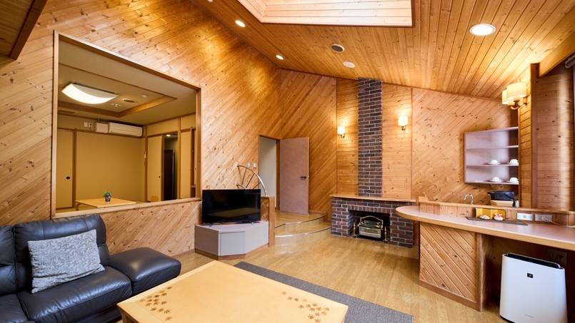 2022年11月リニューアル!リビング+和室+寝室(和ベッド)+源泉ジャグジー半露天風呂【禁煙】