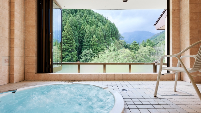 半露天風呂付客室。もちろん半露天風呂は源泉かけ流し天然温泉。湯舟からは谷川岳がご覧いただけます。【44平米・禁煙】