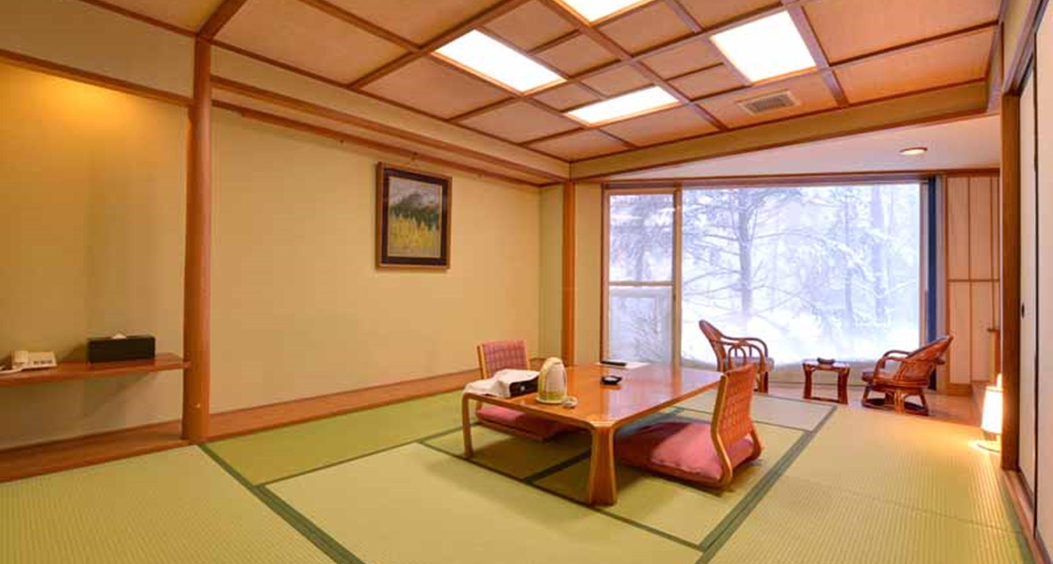 どこか懐かしい温泉宿の旅情を誘うお部屋からは <新緑・紅葉・雪景色>など 四季折々の風景をお楽しみいただけます!