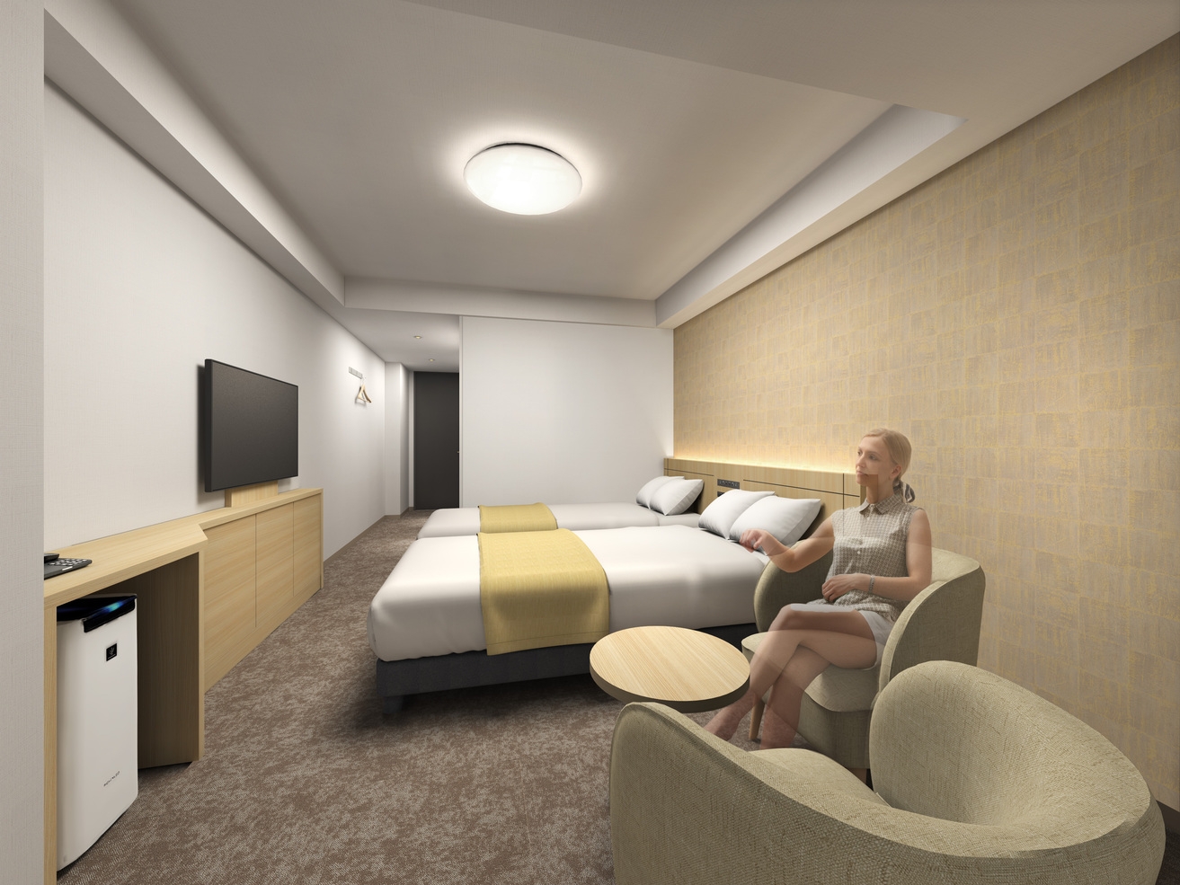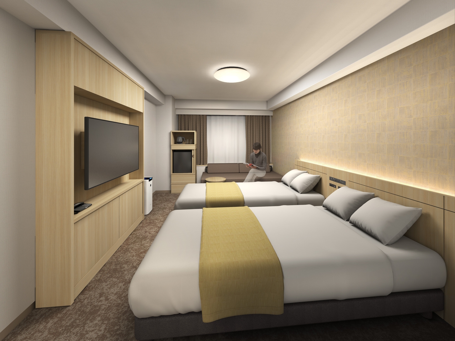 約55平米のお部屋に幅122センチのベッドを4台ご用意したフォースルームです。 ※眺望は烏丸通り側に面しております。 ※ビジネスデスクはございません。