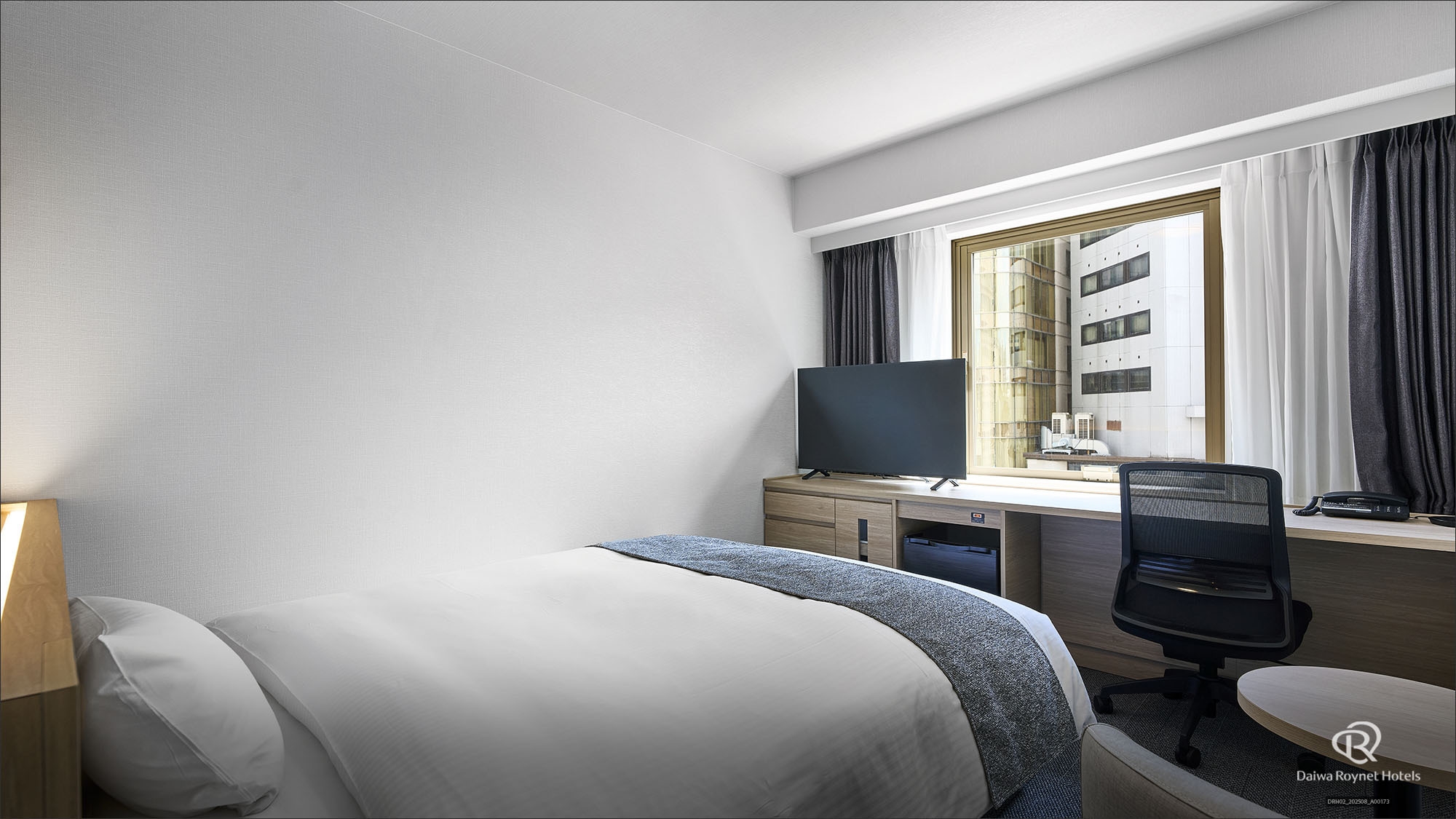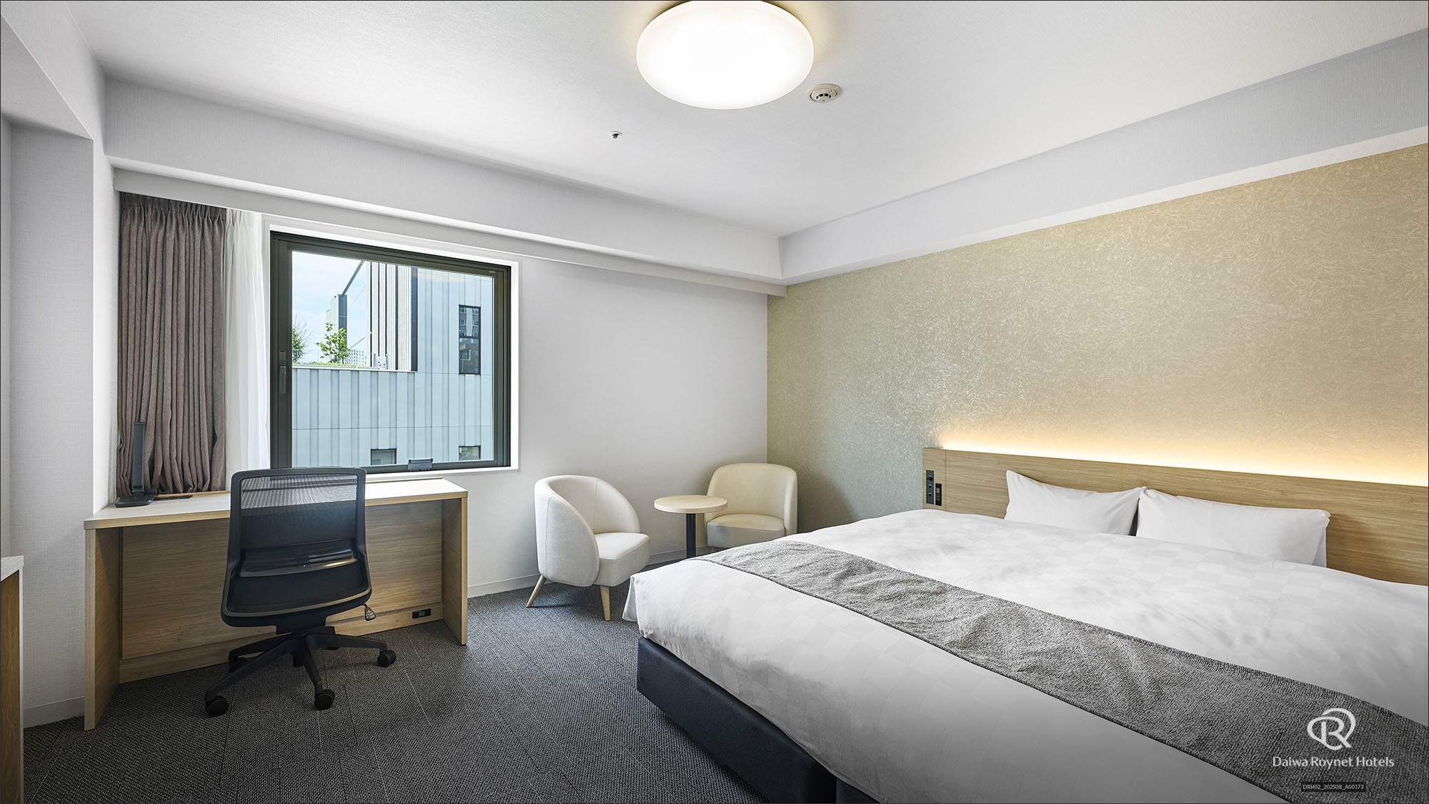【ダブルルーム】ロングデスク窓際配置・加湿空気清浄機・スボンプレッサー・消臭剤・全室無線LAN(Wi-Fi規格)&有線LAN無料接続可