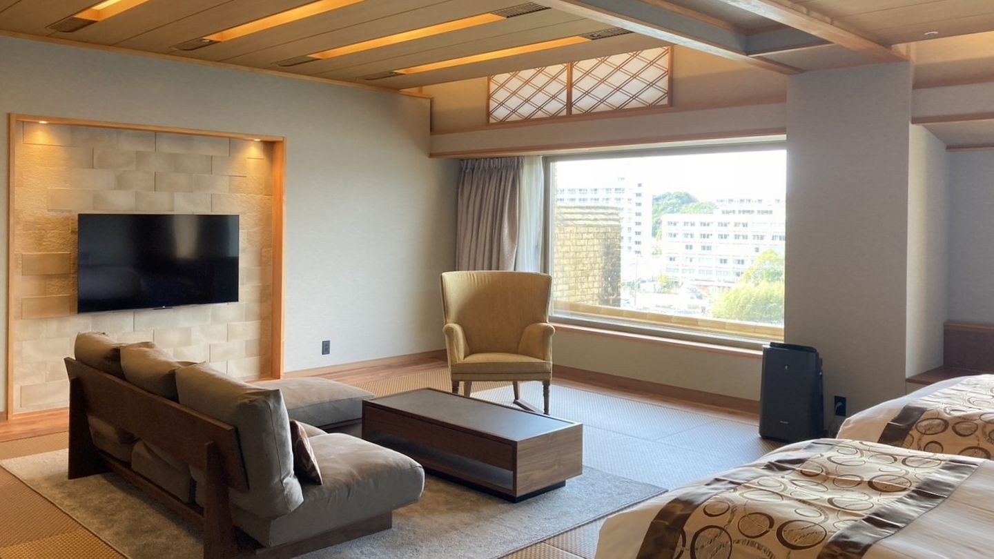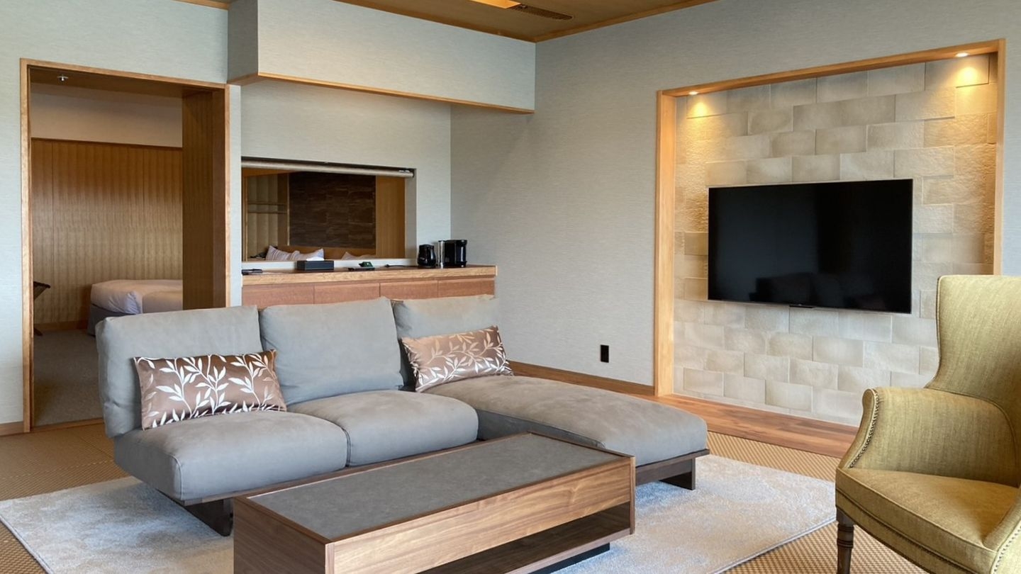 ファミリーや多人数でお使い頂ける和洋室。畳敷にソファーを置き、お履き物を脱いでお寛ぎ頂けます。クラシックとモダンが融合した魅力あふれる空間です。