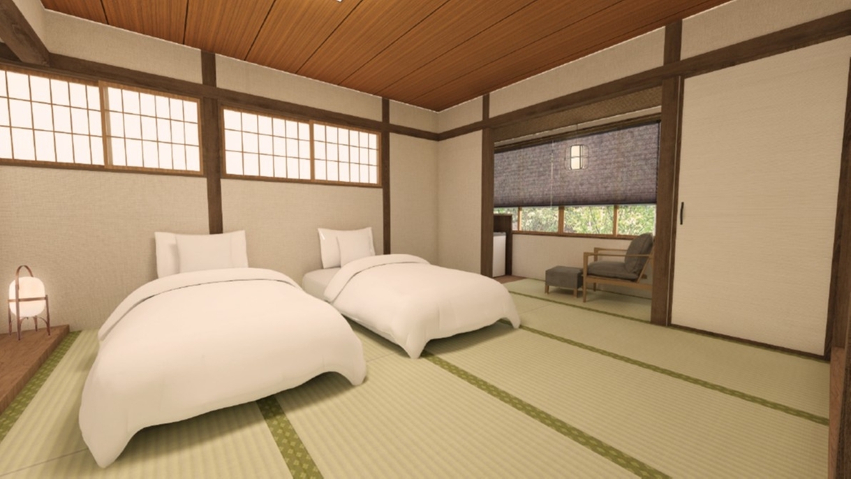 ※江戸時代の古民家を移築した建物ため防音対策がございません。ご了承ください。/お食事処のお隣に位置するお部屋でございます。■貸切露天風呂無料