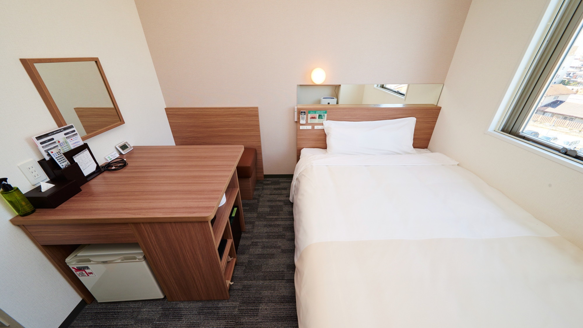 スーパーホテルで最もスタンダードなお部屋である【スタンダードルーム】です。150cm幅のダブルサイズのワイドベッドでぐっすりお休み下さい。