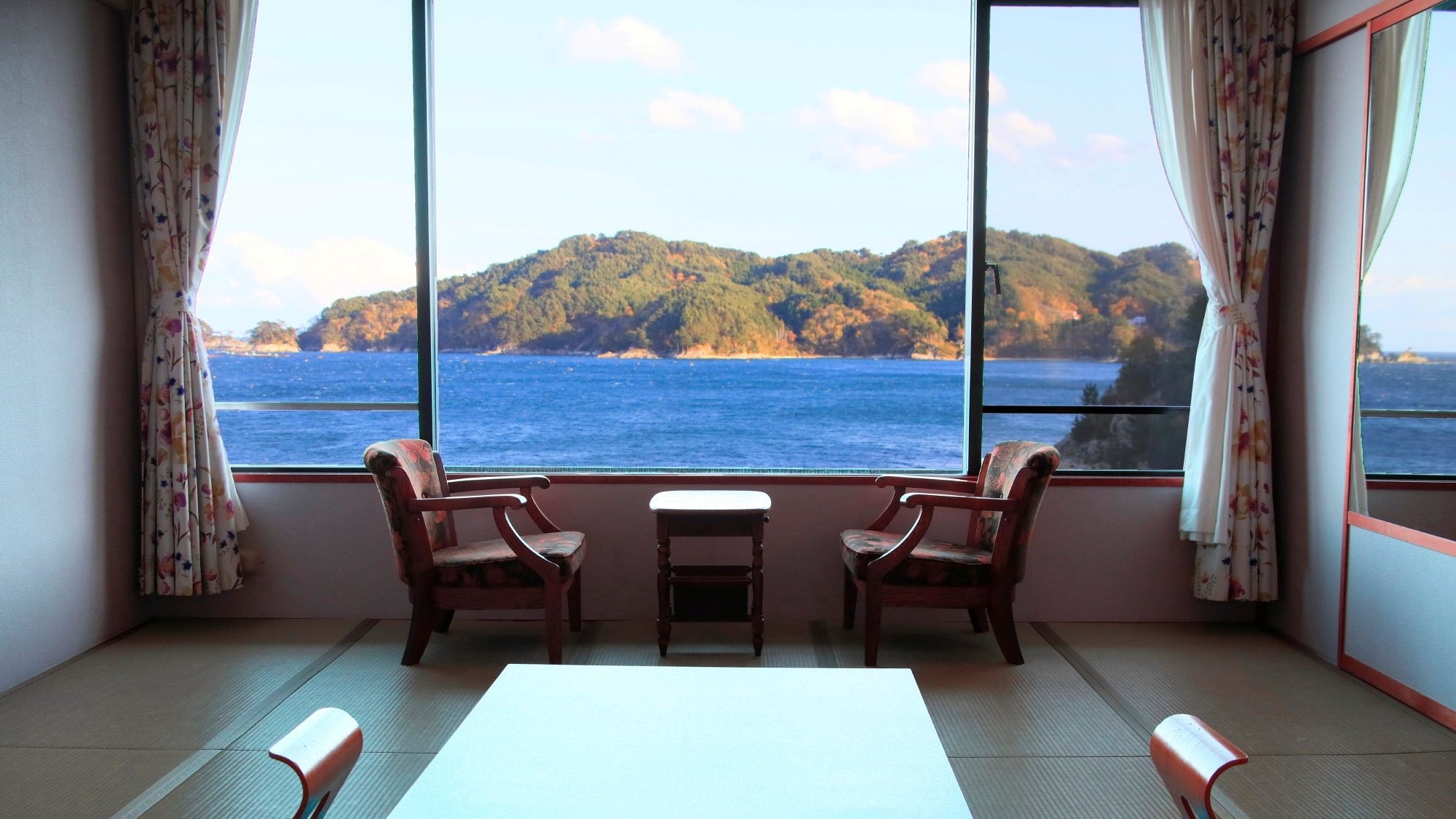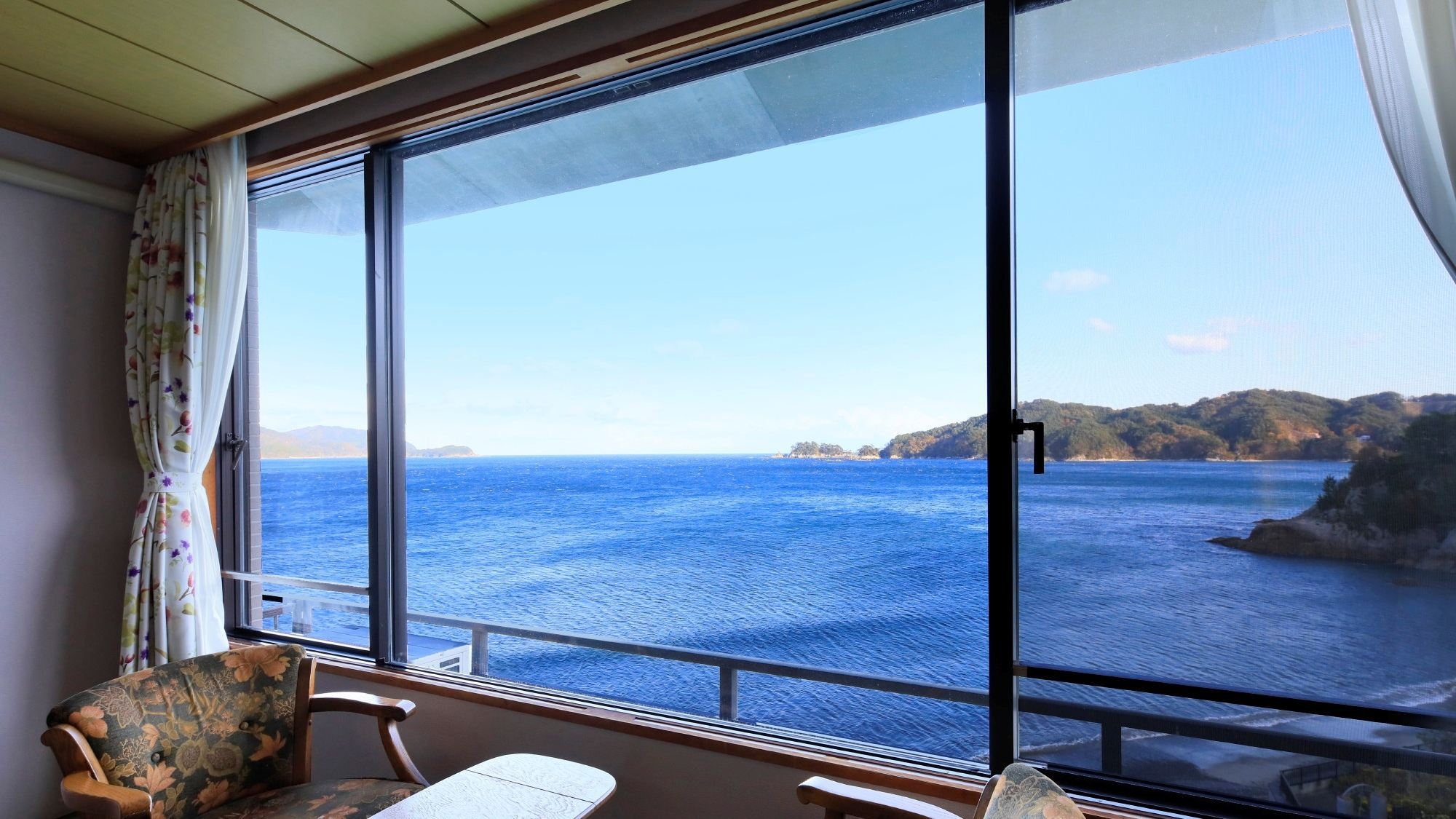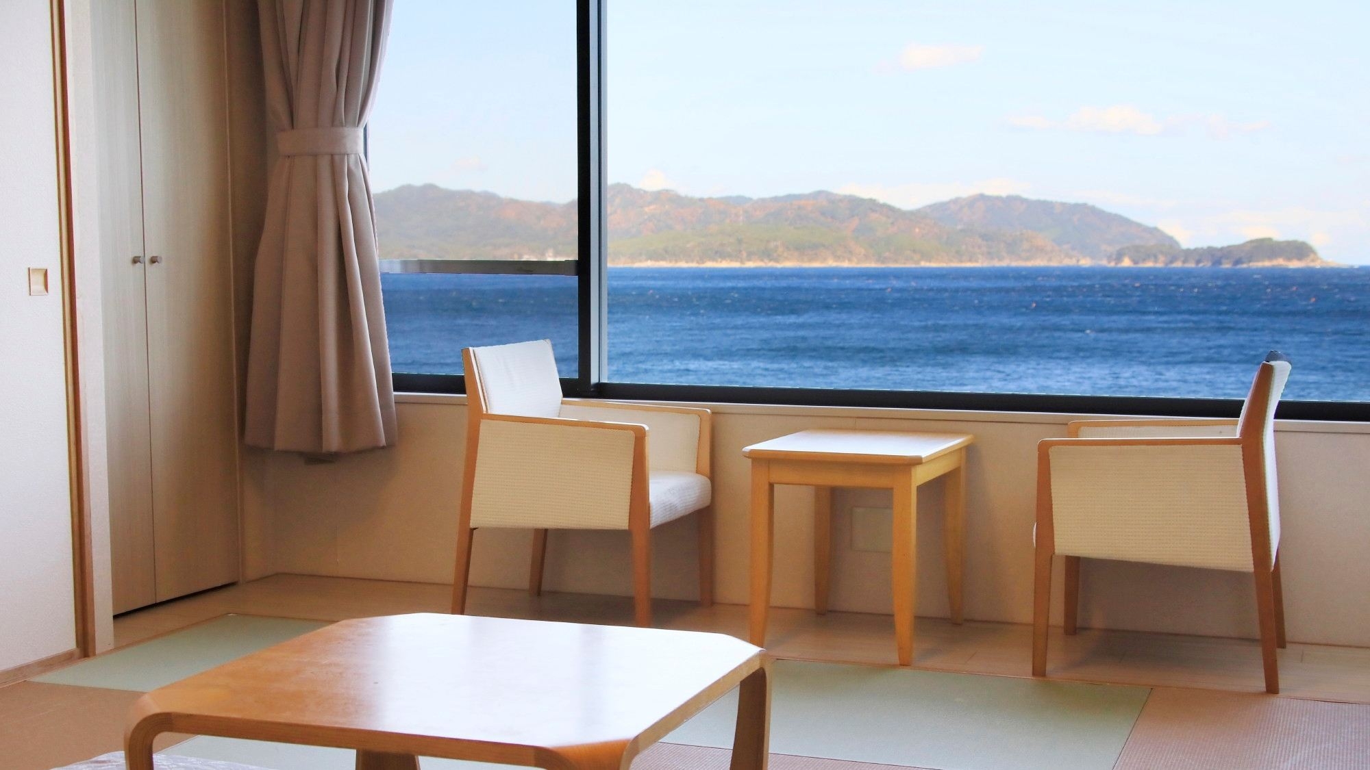 バストイレ付の和室となります。お部屋の窓からは船越湾が一望できます。