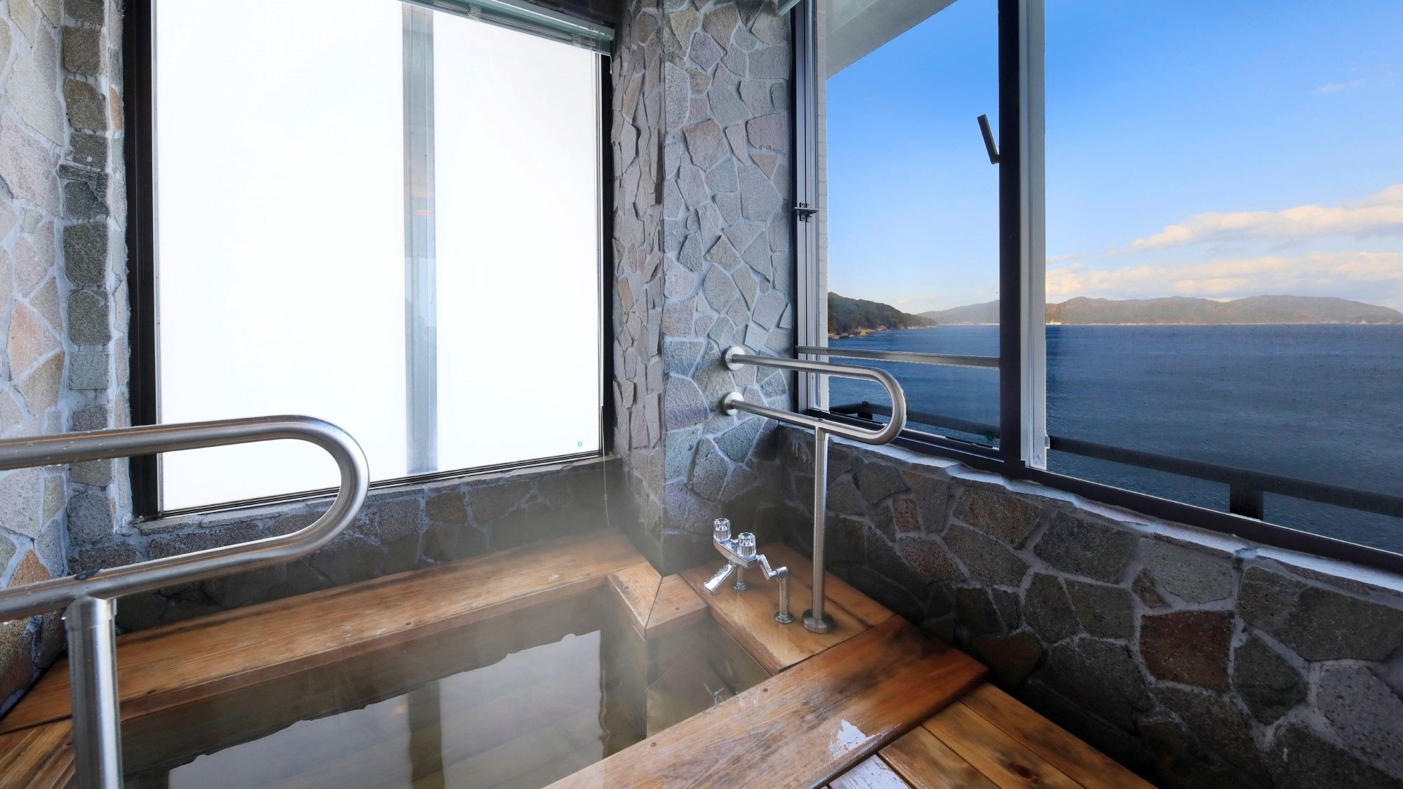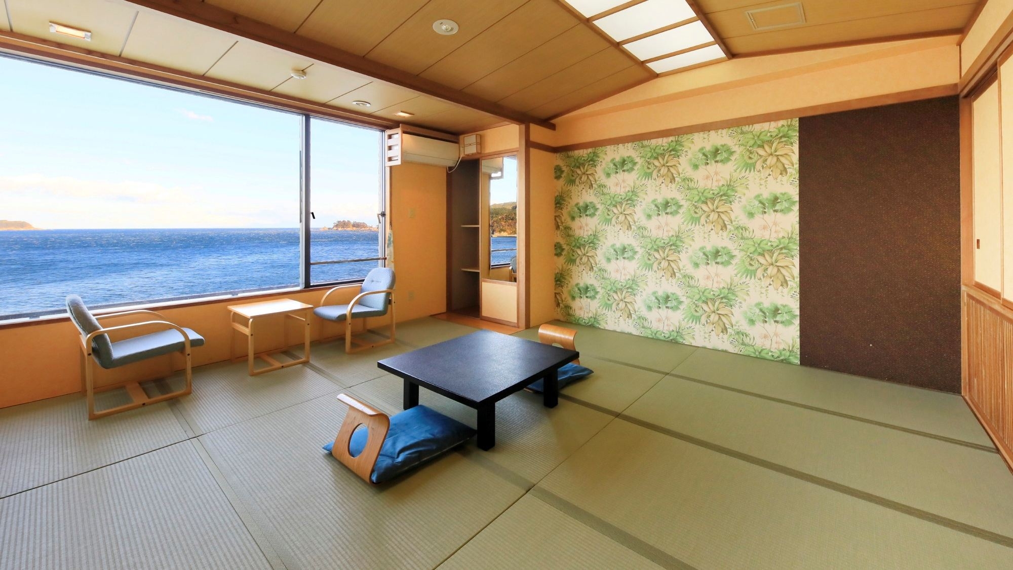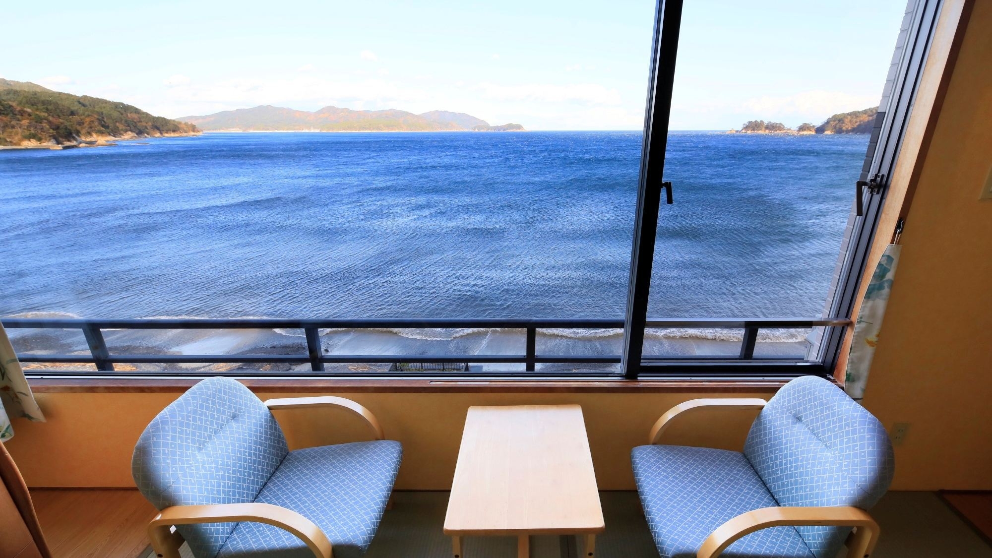 バストイレ付の和室となります。お部屋の窓からは船越湾が一望できます。