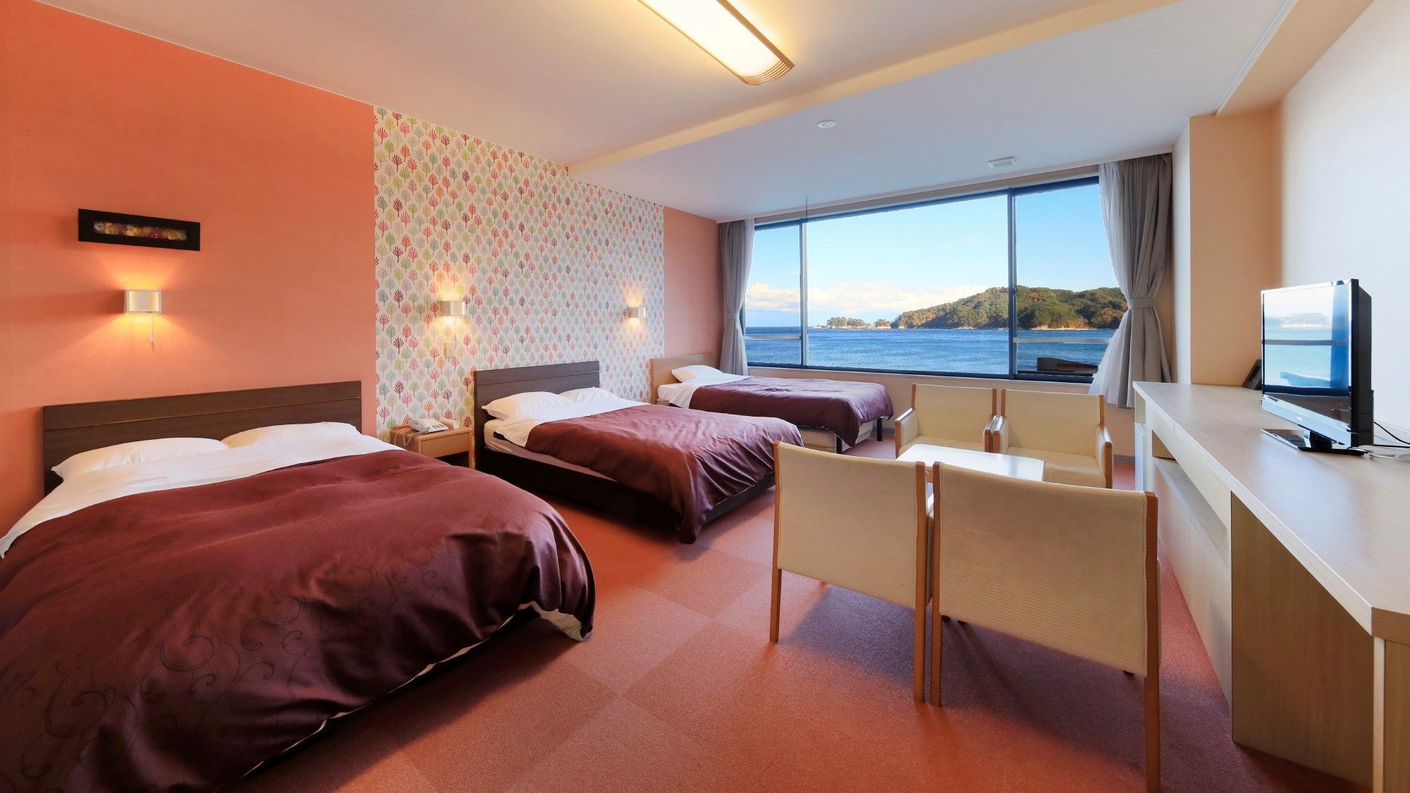 オーシャンビュー(バリアフリートイレ客室)太平洋の地平線を大きな窓から旅情
