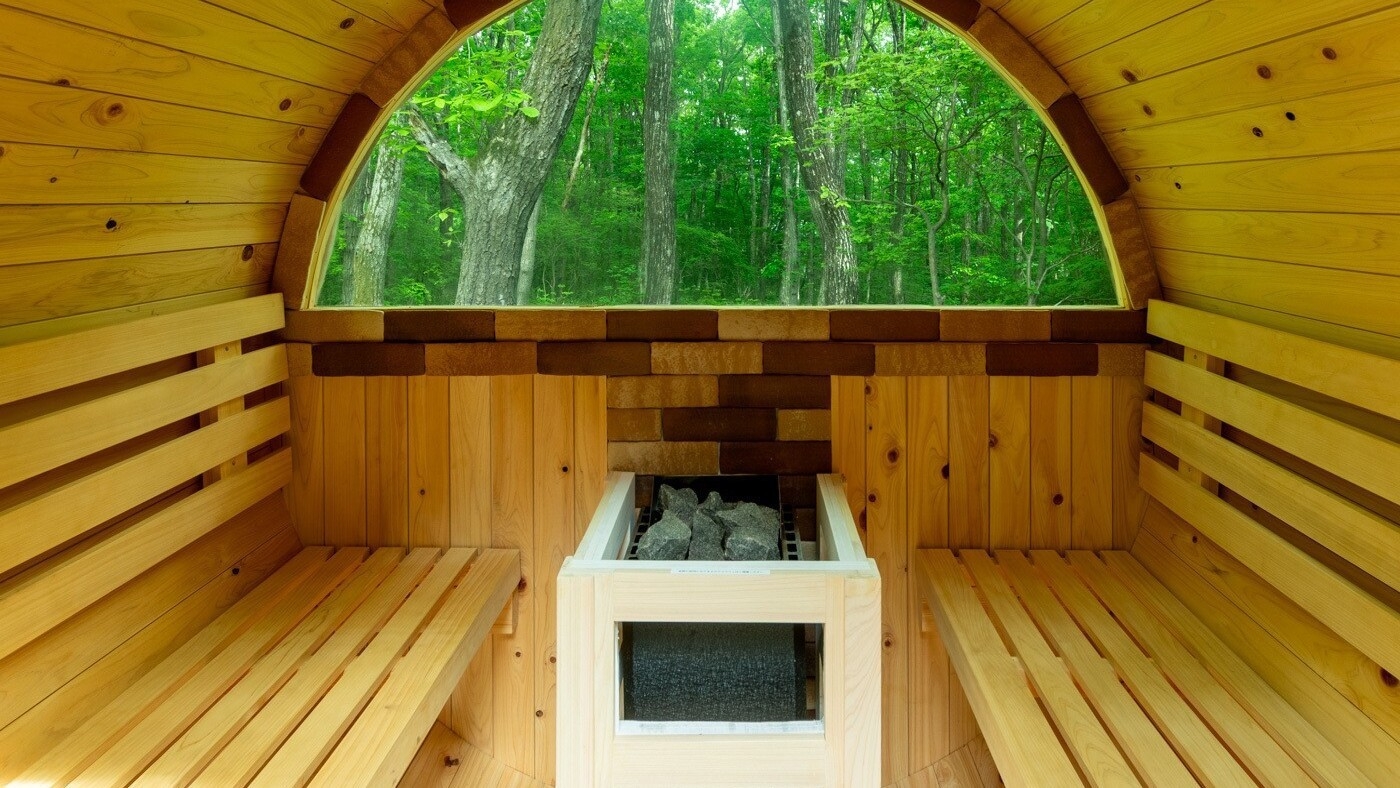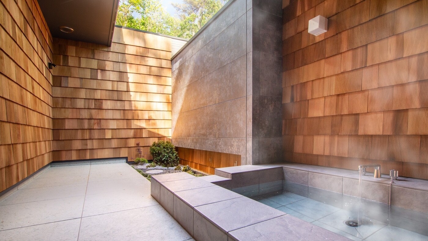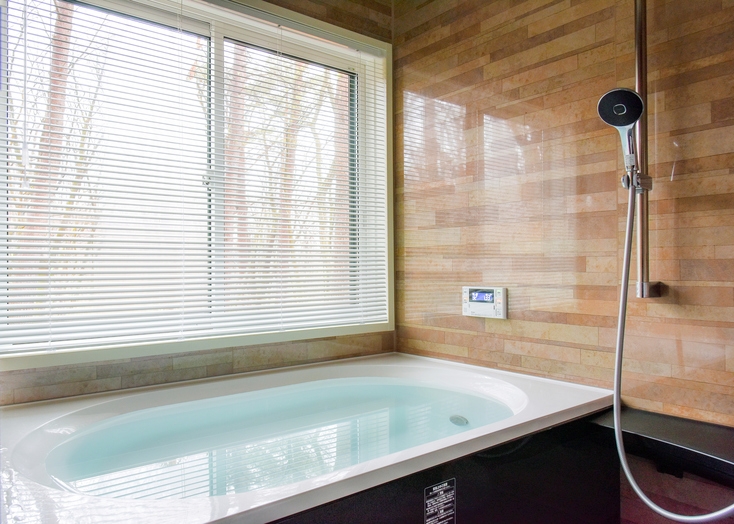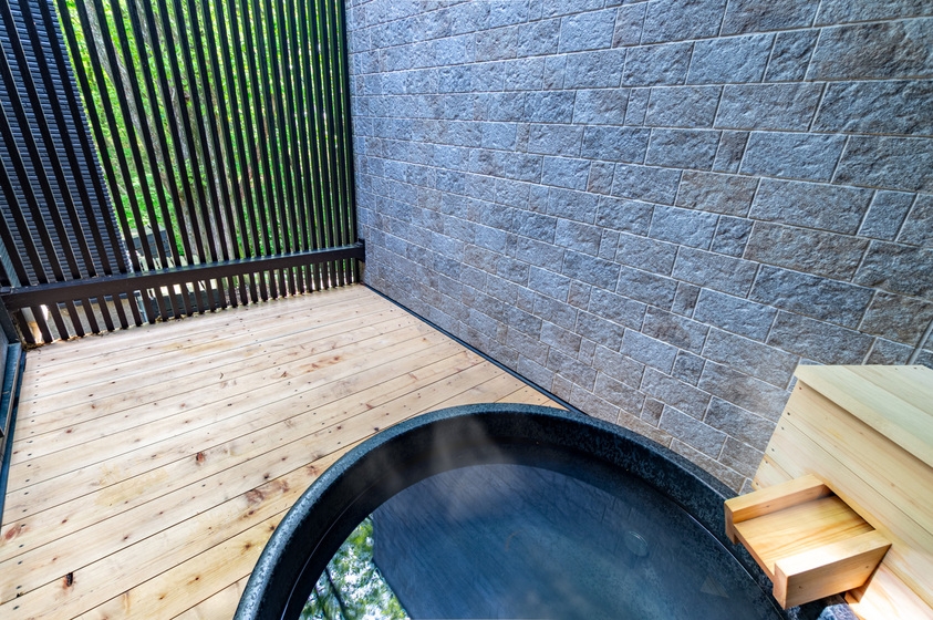 檜をふんだんに利用した別荘で半露天風呂と専用サウナを完備しています。【露天風呂付】【暖炉付き】