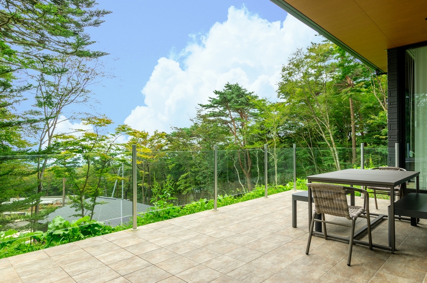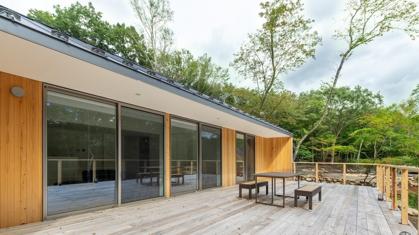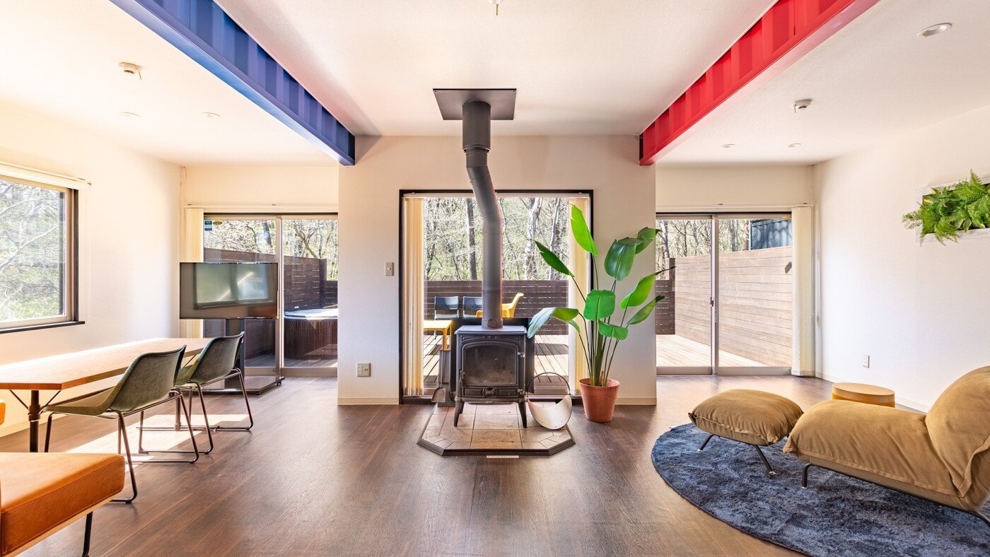 【温泉露天風呂付】【暖炉付き】【テラスに屋根有】定員6名 間取り2LDK 寝具ベッド4布団2 駐車場2台