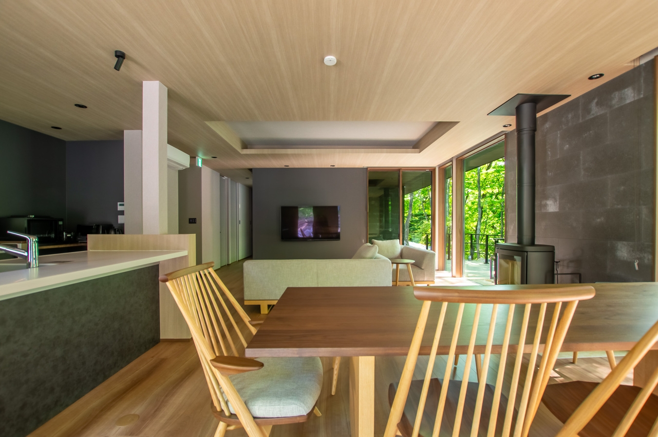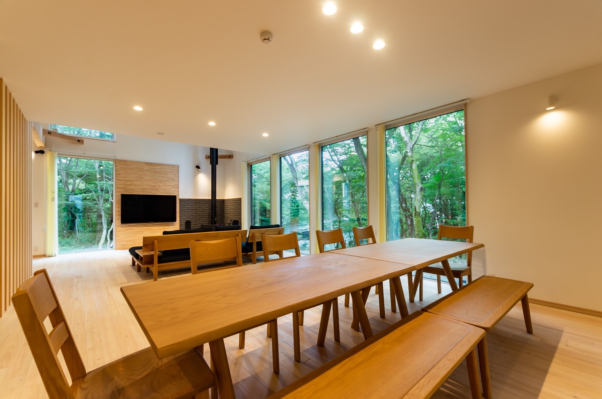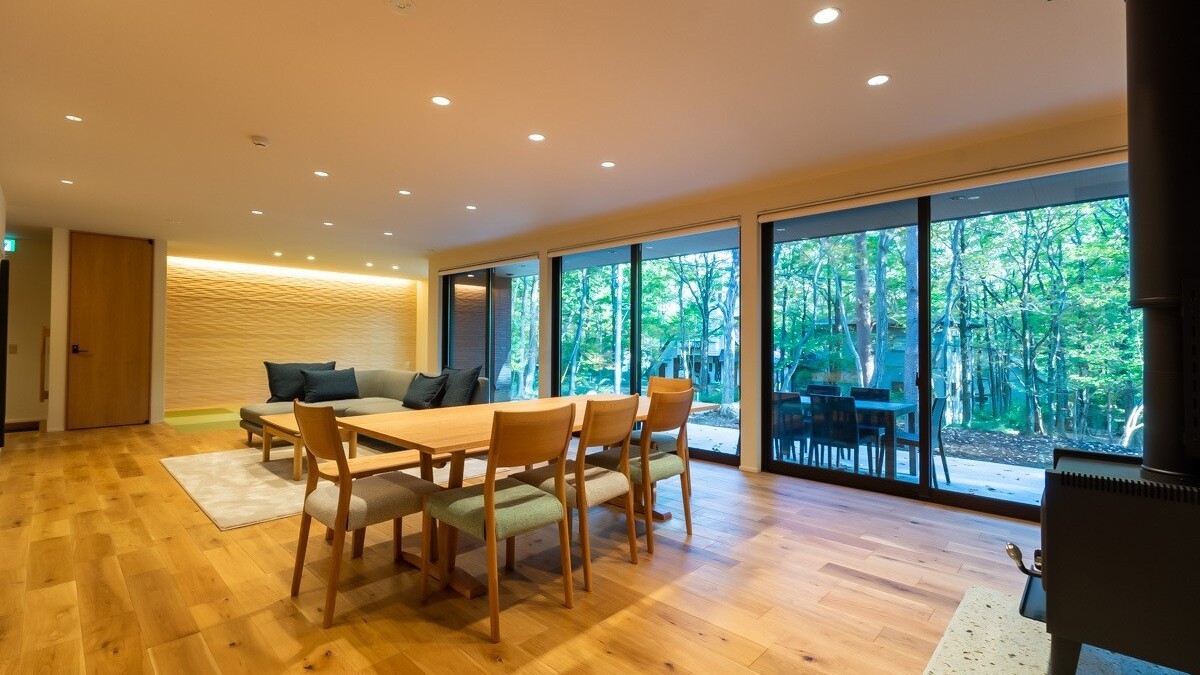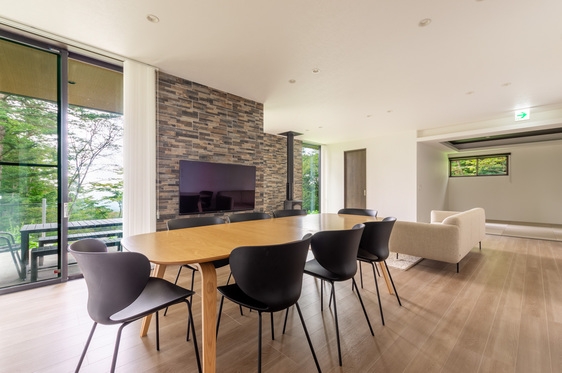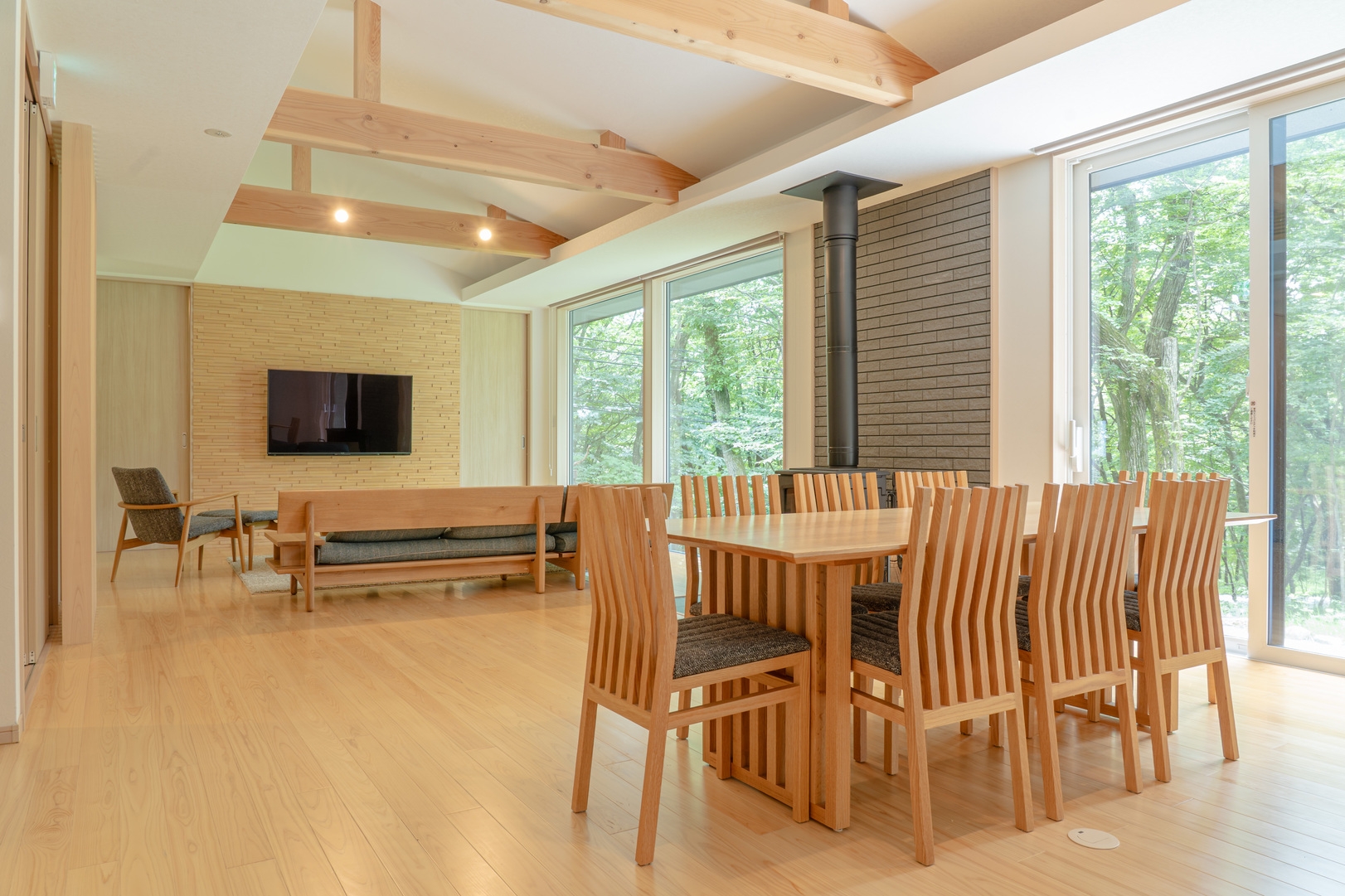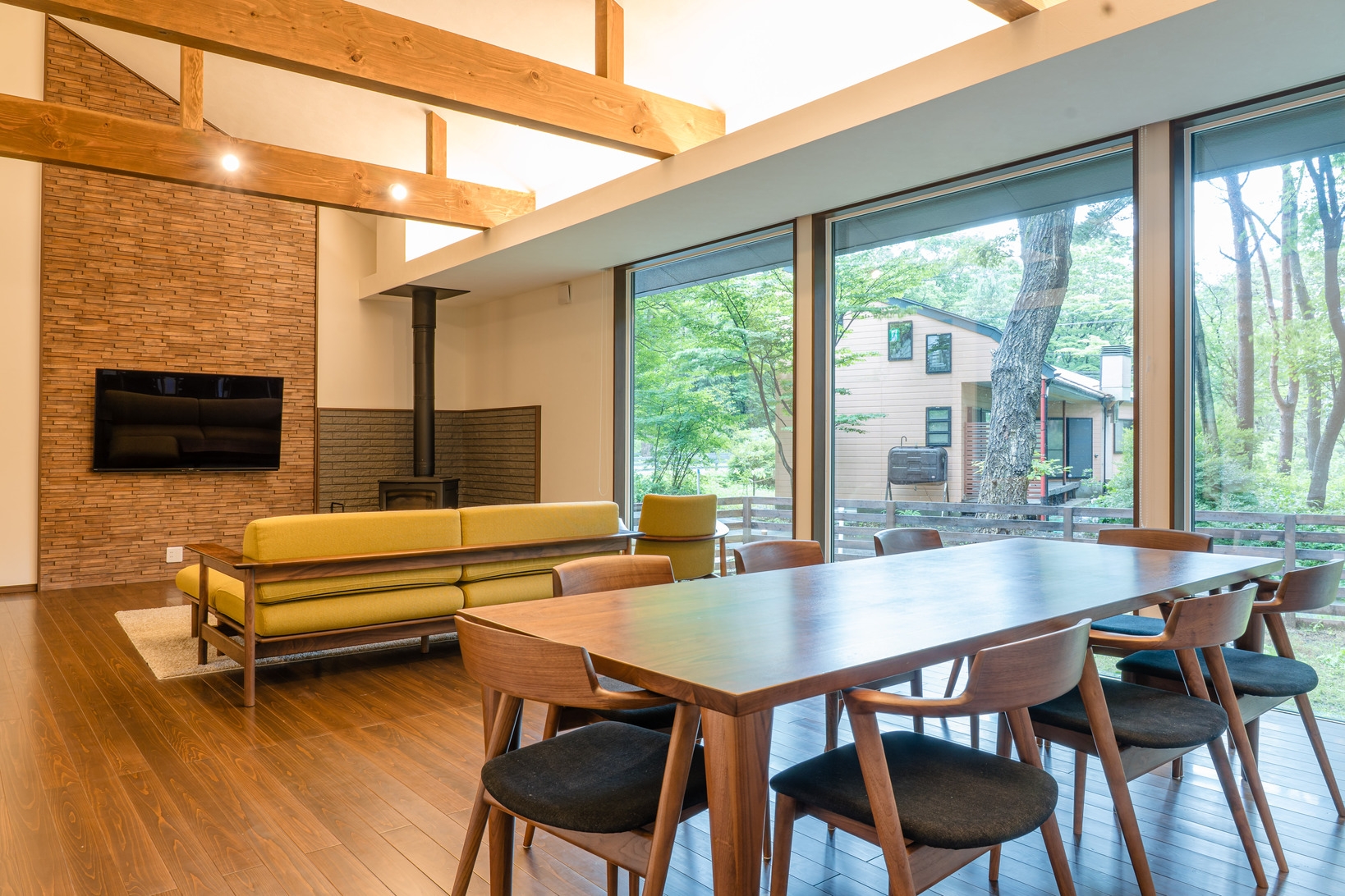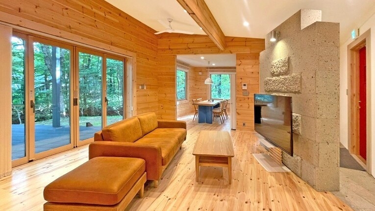 【温泉露天風呂付】【暖炉あり】【WIFI有】【テラスに屋根有】定員:10名 間取り:4LDK 寝具:ベッド6布団4 駐車場2台