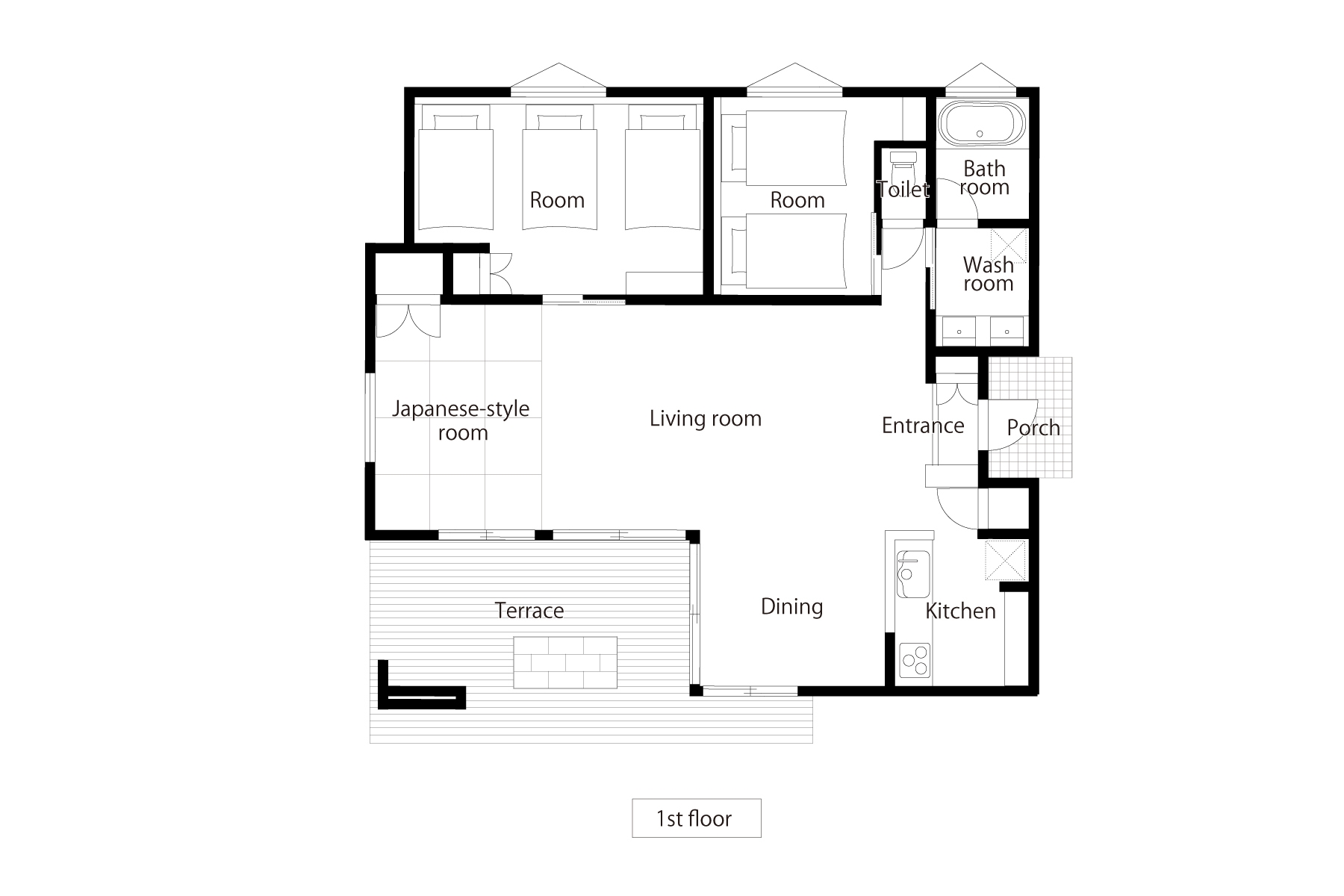 間取り:3LDK 定員:8名 寝具(一例):ベッド8台 ※広さ/間取り/寝具の種類の異なるお部屋が複数ございます。
