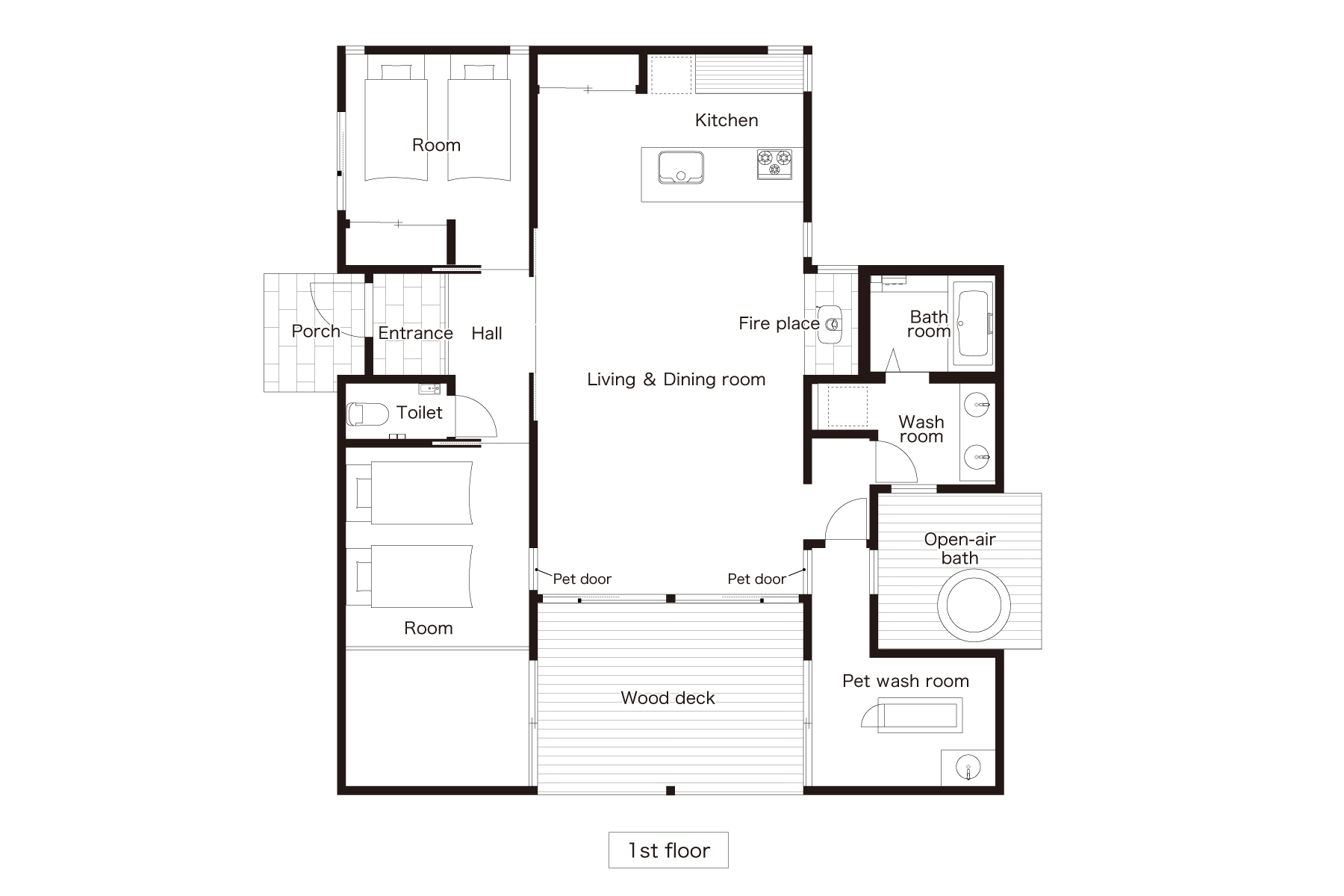 【ドッグラン】【暖炉】【WIFI】【テラスに屋根有】定員8名 間取り3LDK 寝具ベッド4布団4