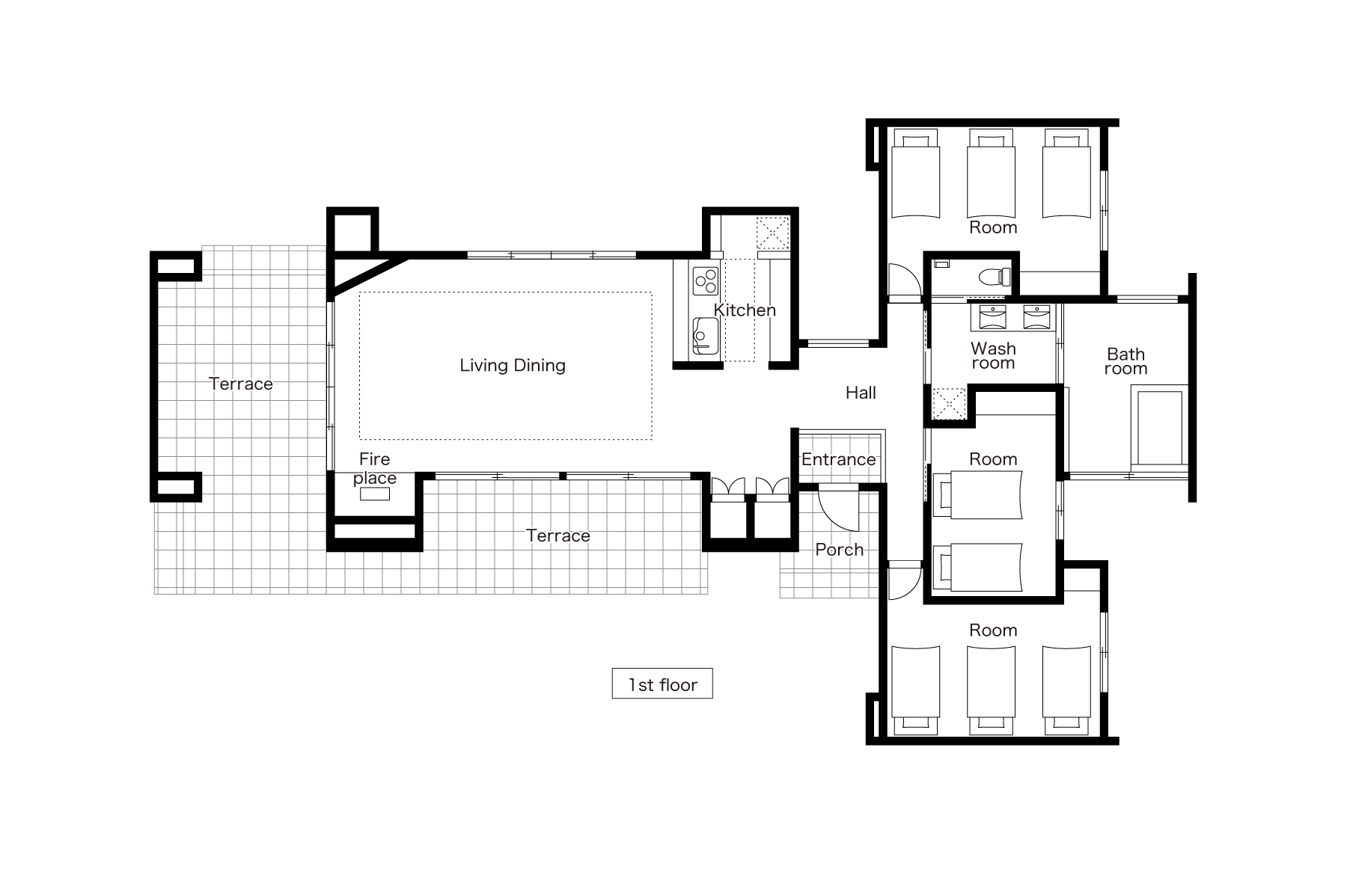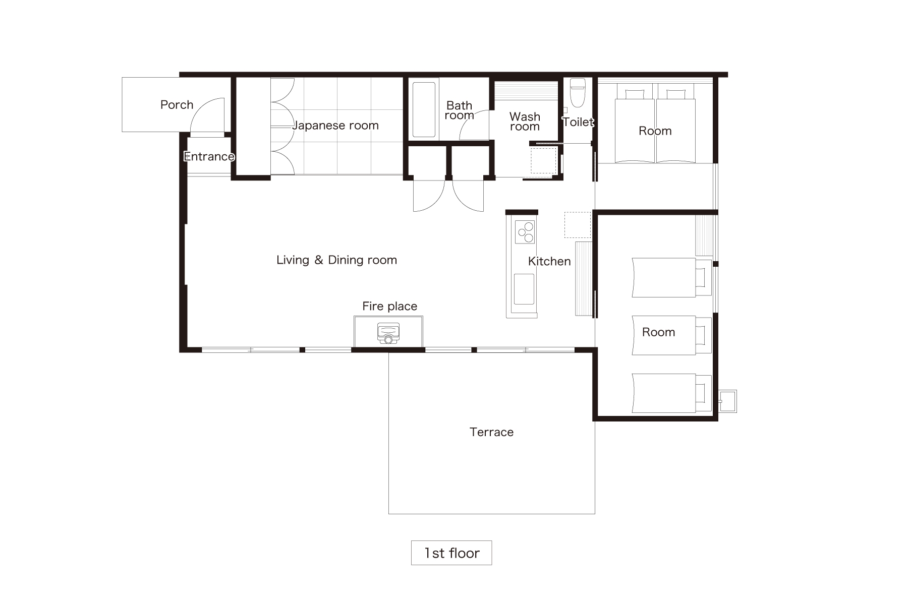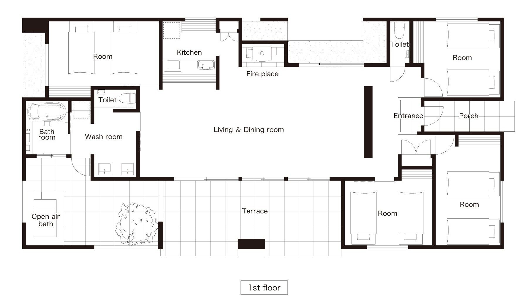 【テラスに屋根有】【暖炉付き】間取り:3LDK 定員:8名 寝具:セミダブルベッド8台