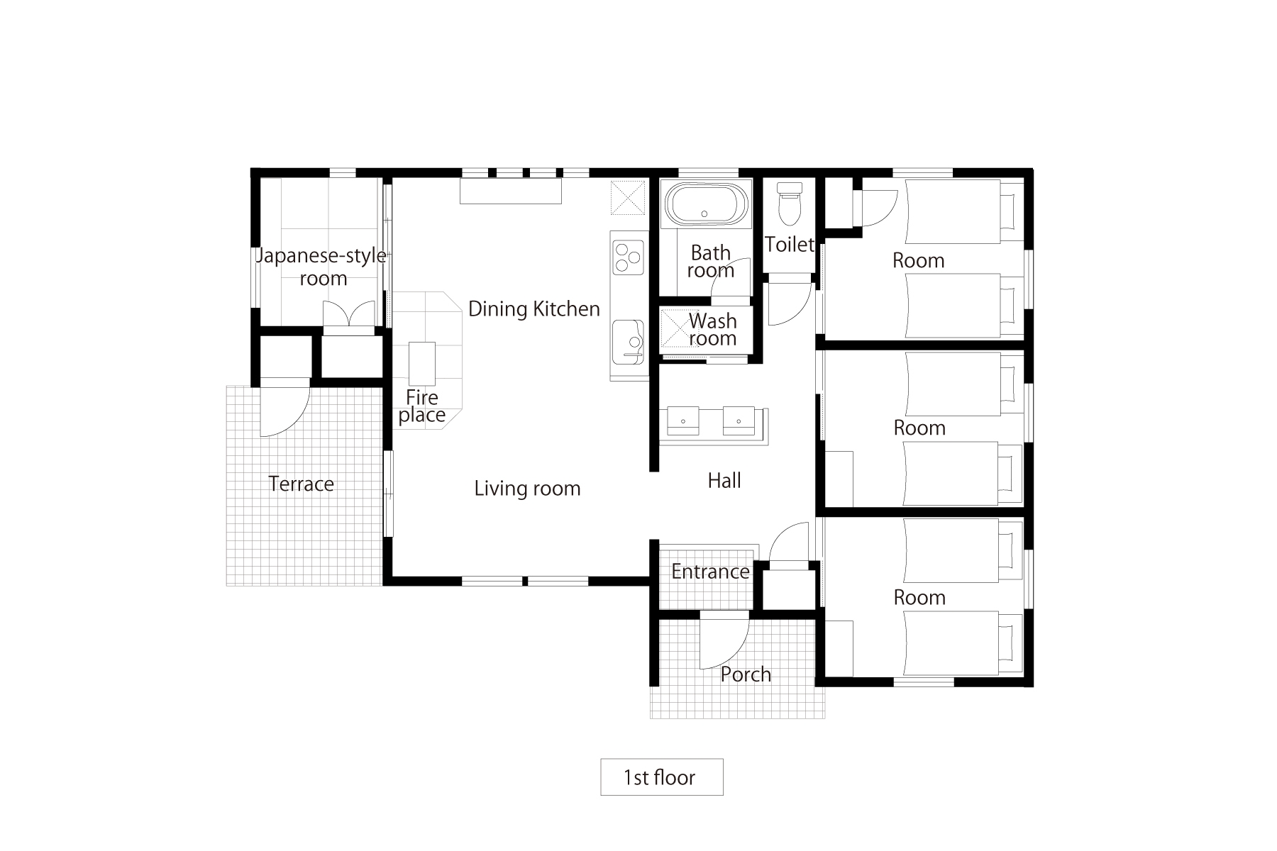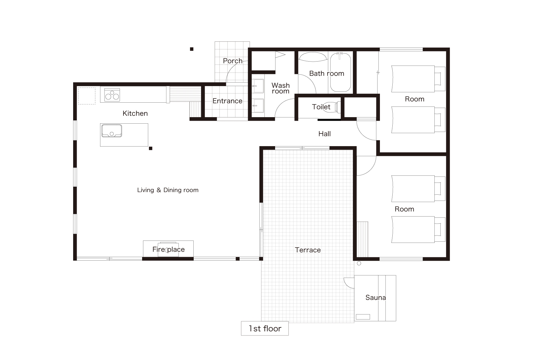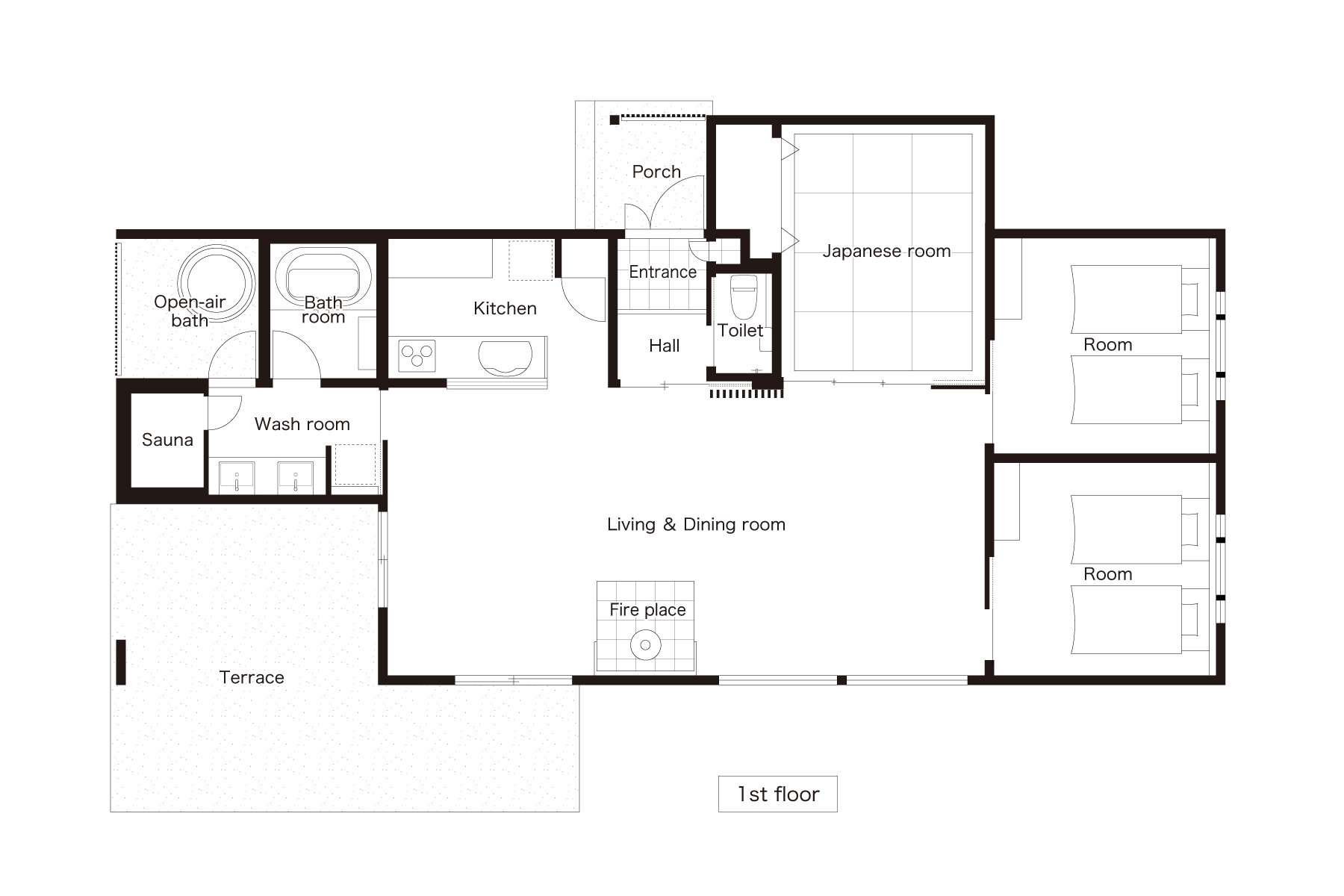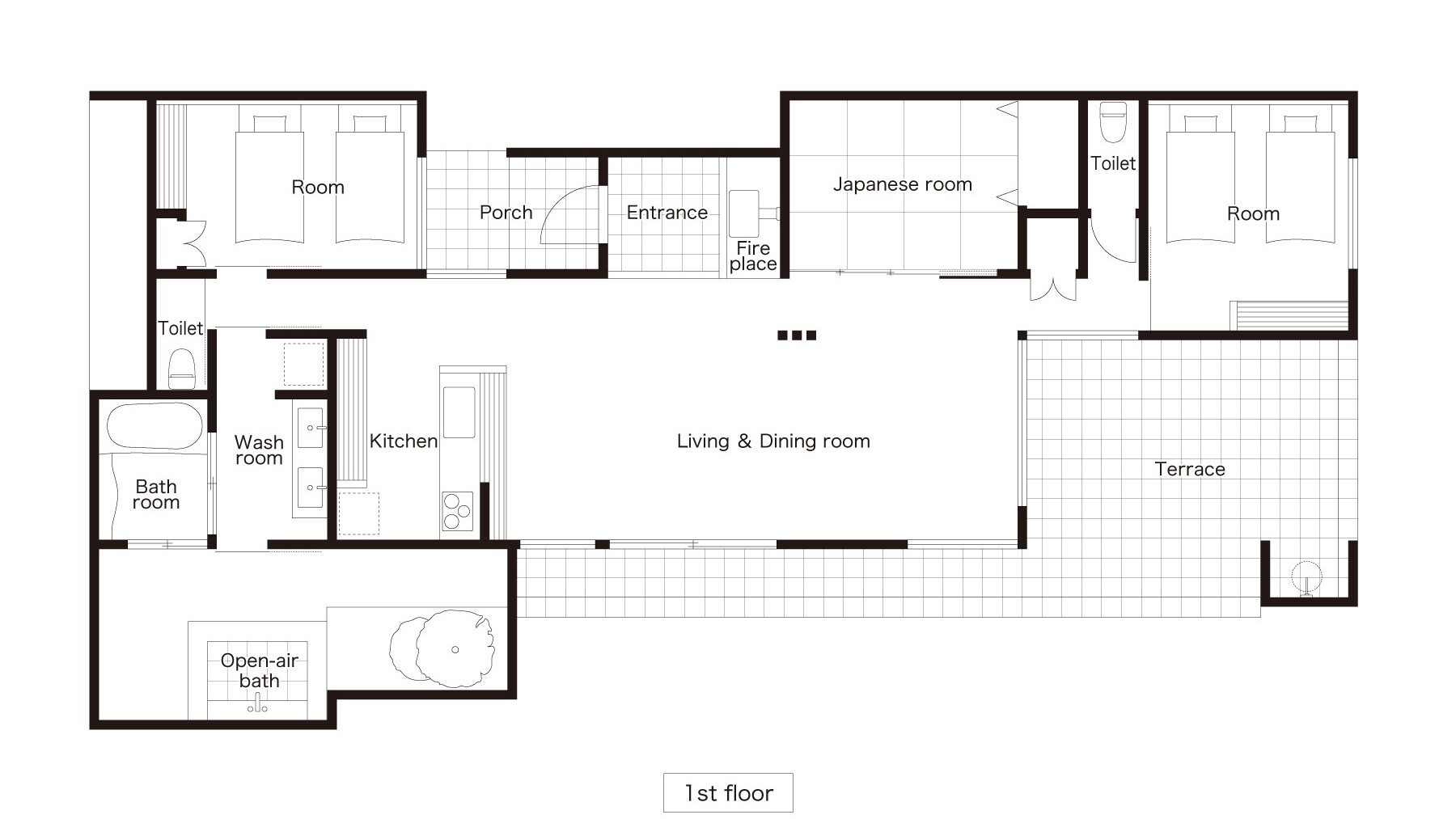 【テラスに屋根有】【暖炉付き】間取り:3LDK 定員:8名 寝具:セミダブルベッド8台