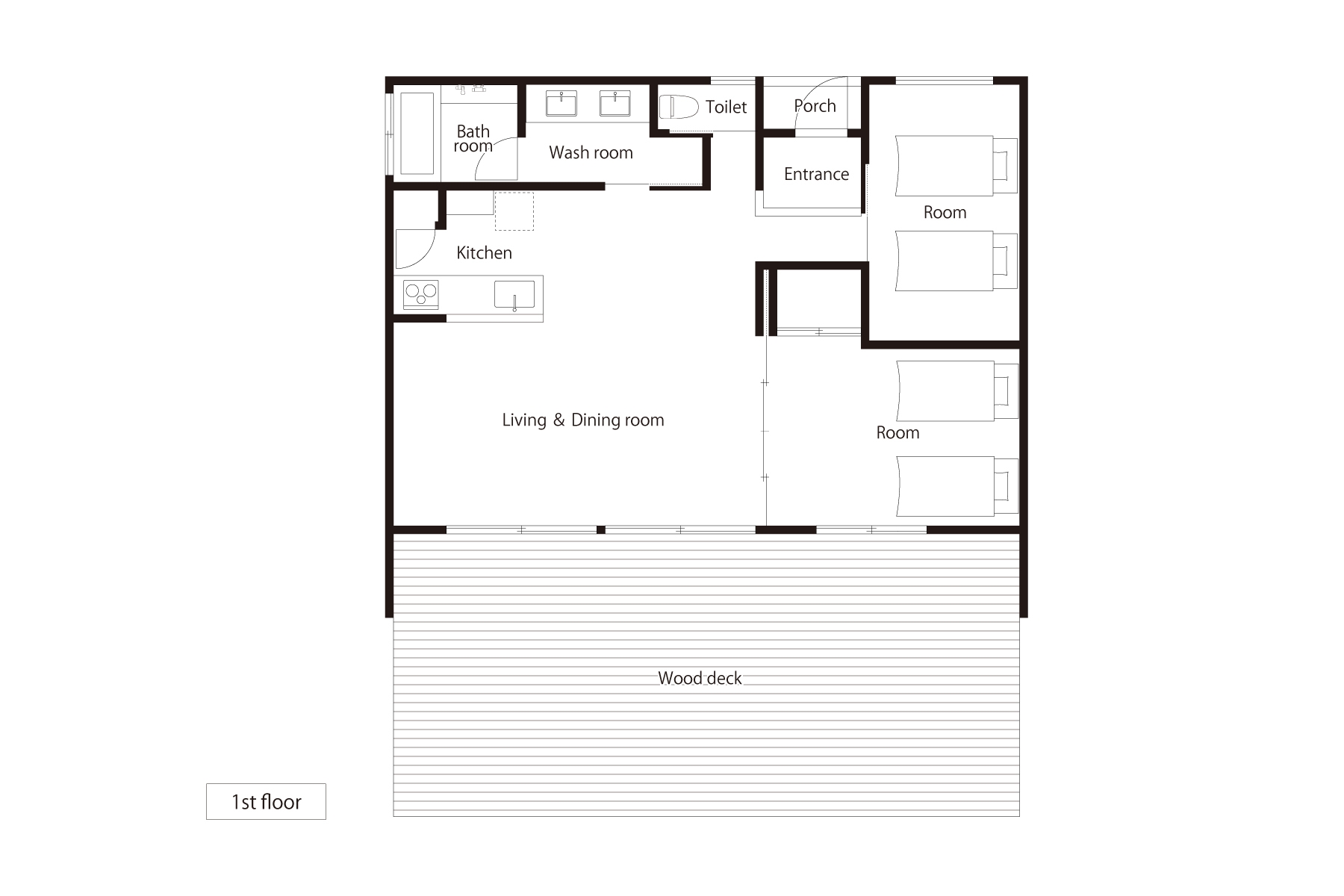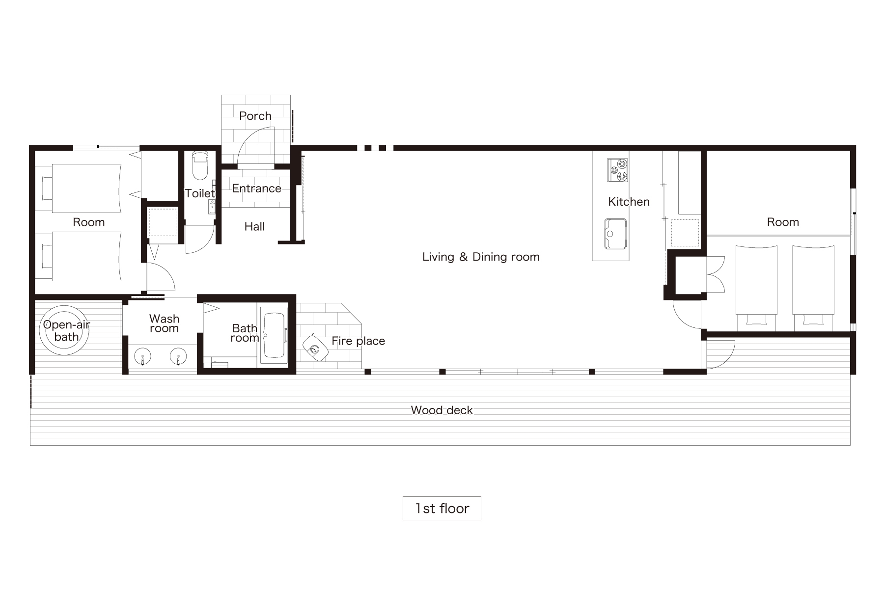 間取り: 定員:6名 寝具:ベッド4布団2 駐車2台【暖炉付き】
