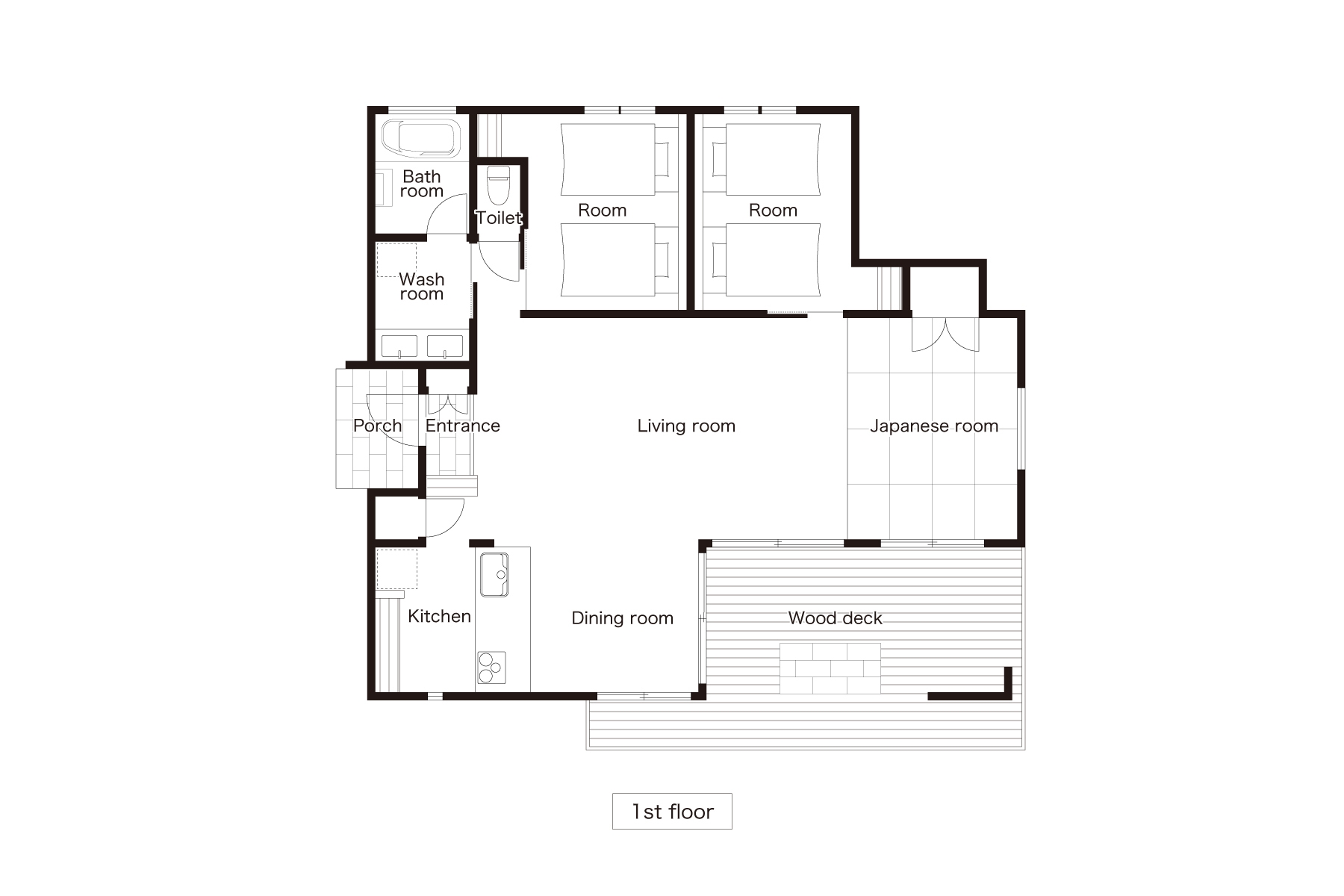 間取り:4LDK 定員:6名 寝具(一例):ベッド6台 ※広さ/間取り/寝具の種類の異なるお部屋が複数ございます。