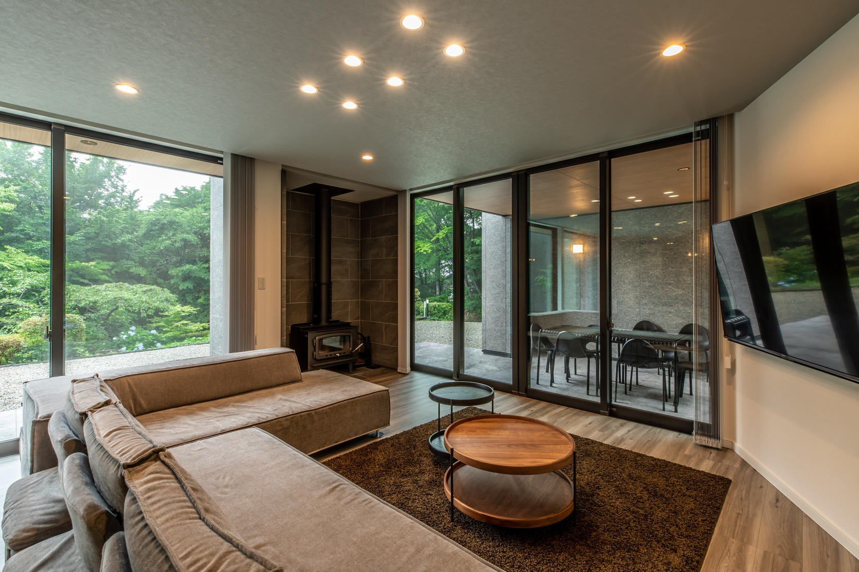 【シアタールーム】【暖炉】【WIFI】【テラス屋根有】【築浅】定員8名 間取り:3LDK 寝具:ベッド5布団3 駐車場2台