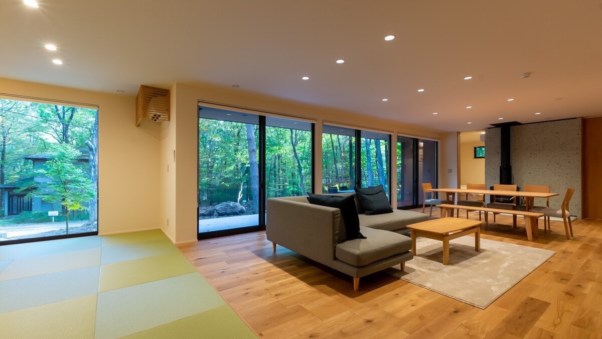 定員:8名(最大10名) 寝具:ベッド6台布団4組 【露天風呂付】【暖炉付き】