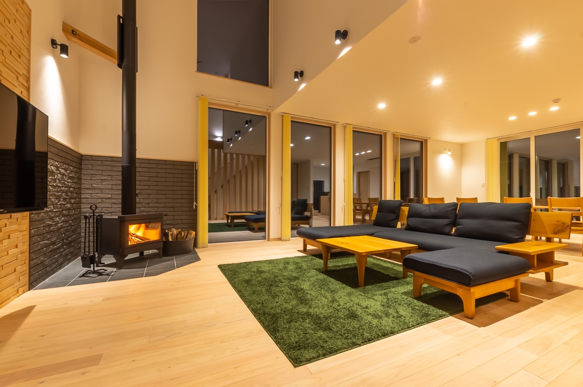 定員6名 間取り:1LDK+2階ロフト 寝具:ベッド4台 布団2組【暖炉付き】*こちらのお部屋はフロントからお車でのご利用が必要です。