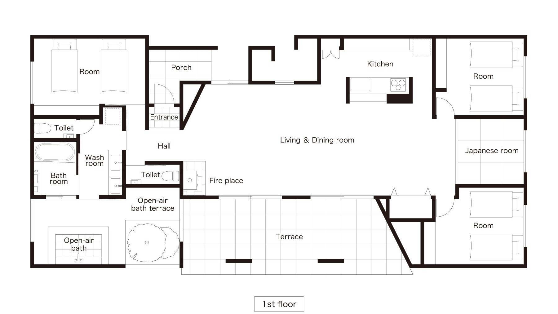 定員8名 寝具:ベッド8台 間取り:4LDK 駐車場:3台 【露天風呂付】【暖炉付き】