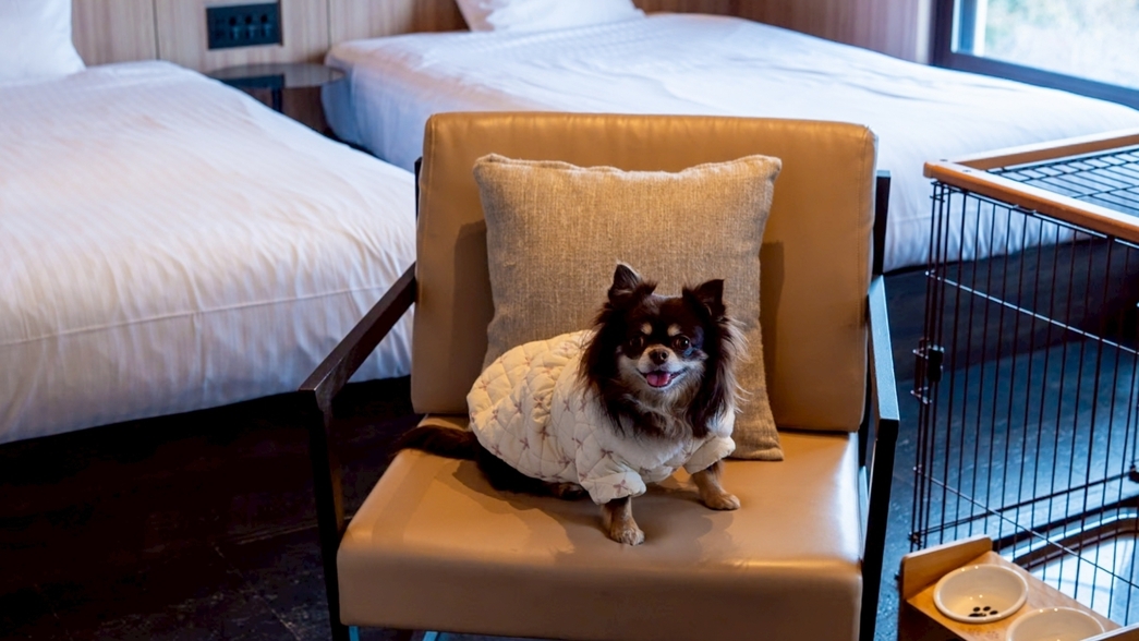 広めの客室でコルクタイルや飛び出し防止フェンスなど ペット連れのお客様に寄り添った客室となっております♪