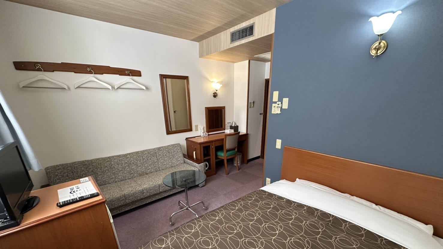 ダブルベッド1台のお部屋です。 お一人様のご宿泊はもちろん、最大で大人2名様までご宿泊頂ける少しリッチなお部屋です。 ※眺望はお部屋によって代わりますのでご了