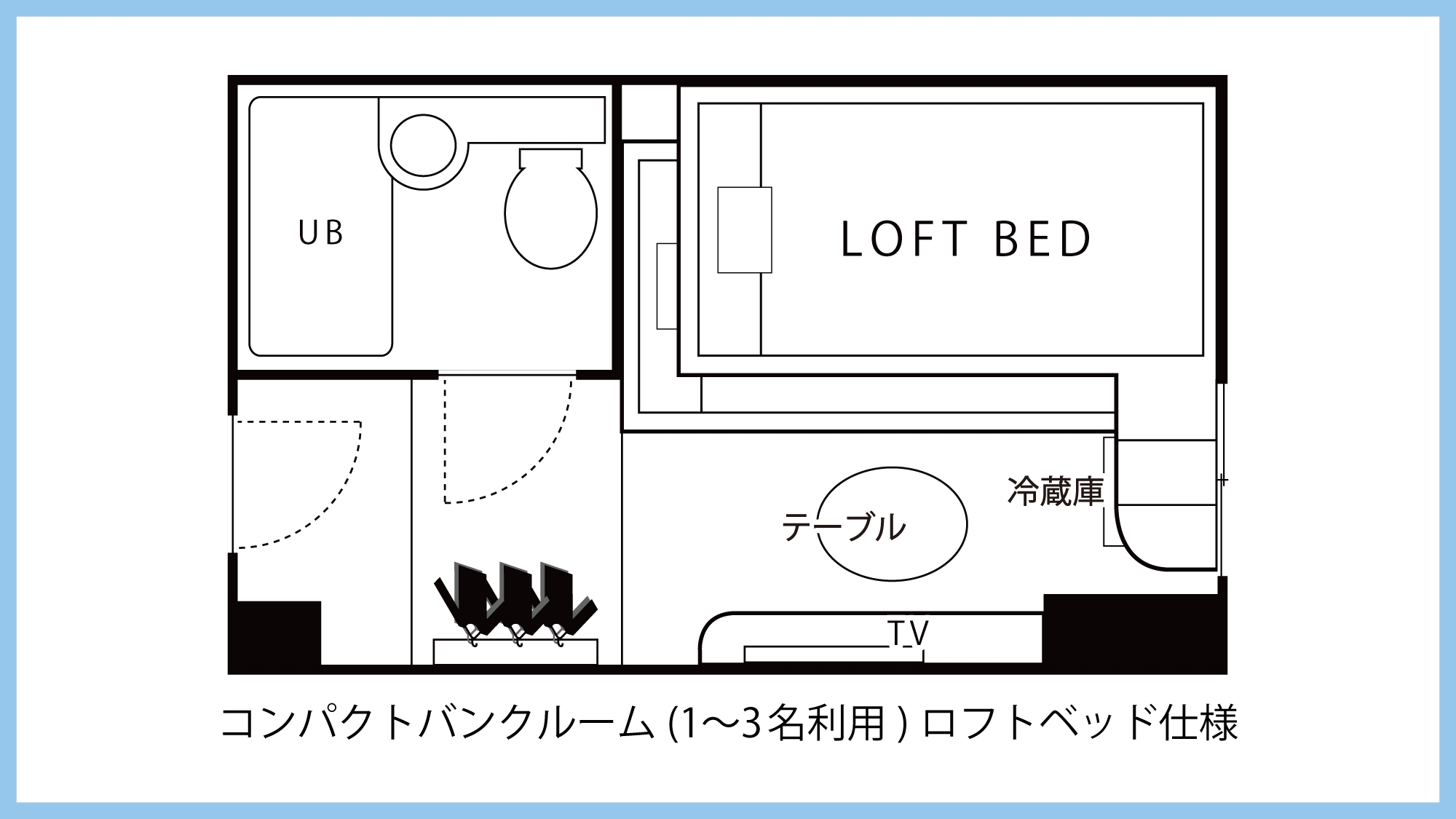 ロフト仕様の2段ベッドを備えた畳のお部屋です。 靴を脱いでゆっくりくつろげます。