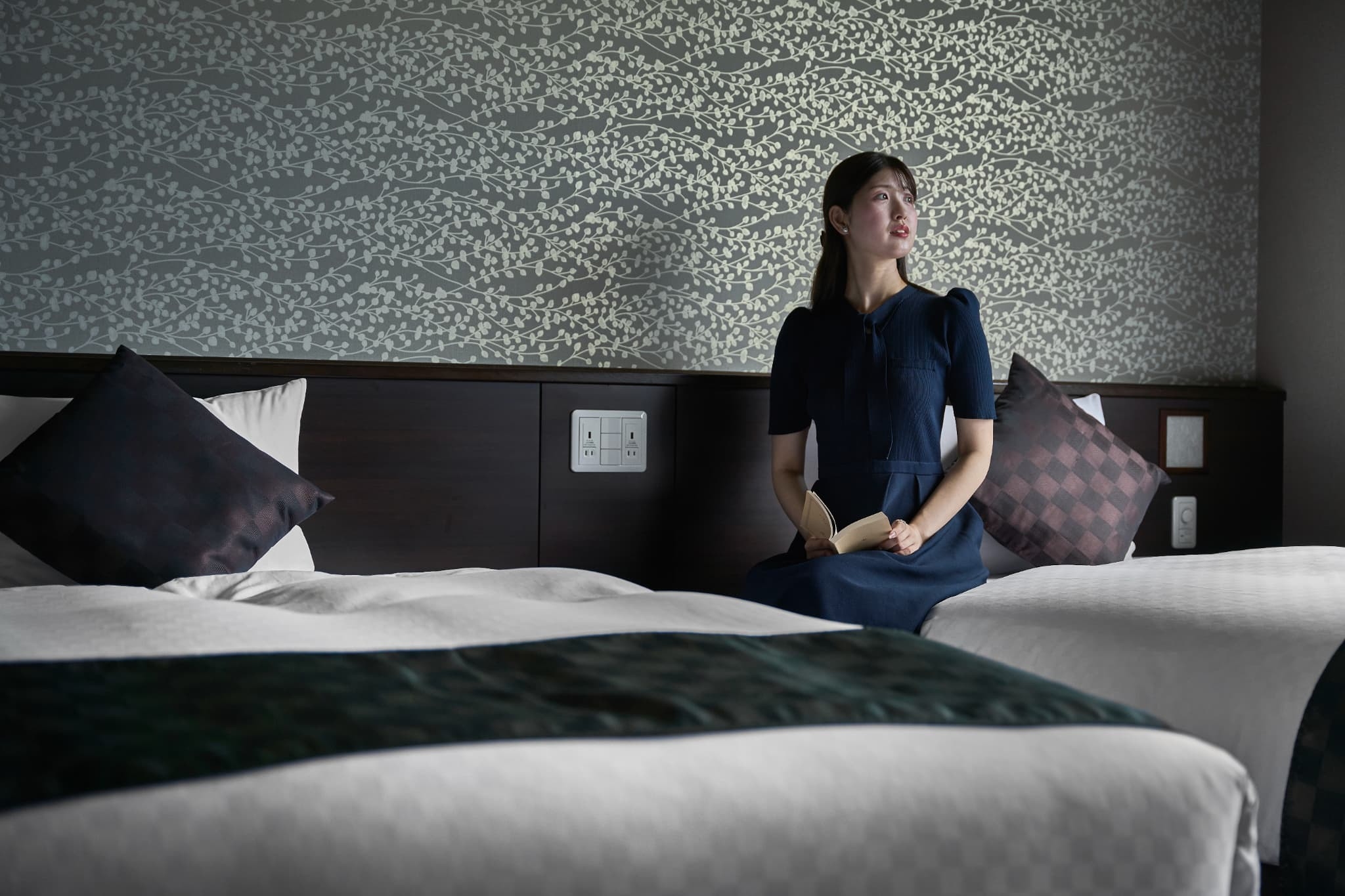客室面積50平米【禁煙】シモンズ8.25インチピロートップマットレスベッド幅120cmx200cm 3名〜5名ご利用時はお布団での対応となります。