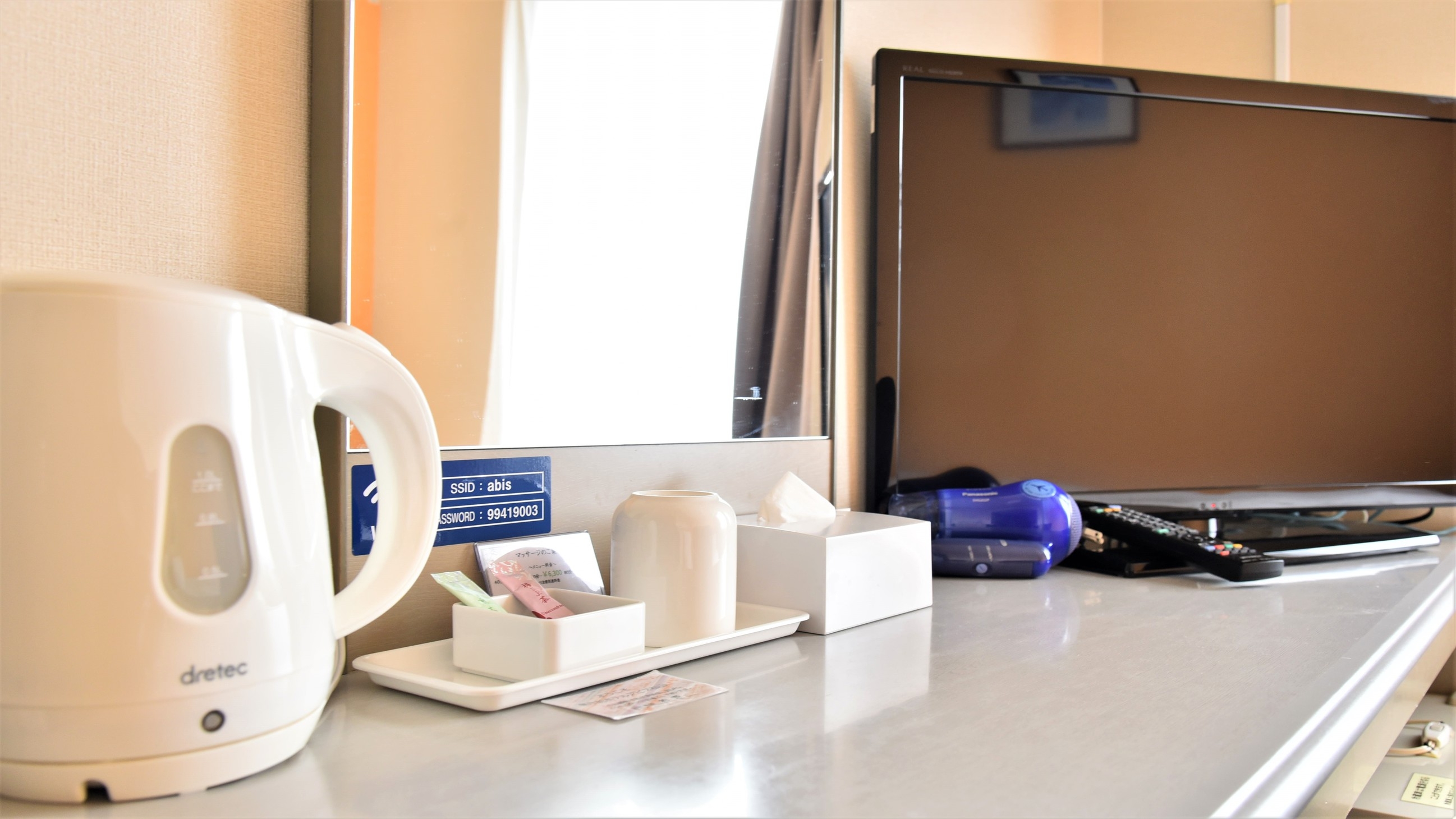 セミダブルベッド使用、和洋食朝食バイキングサービス。全室シャワートイレ完備。全室インターネット無料接続。