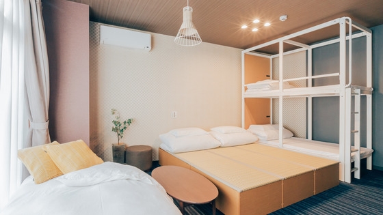 小上がりが便利な、ご家族・グループでのご利用に最適なお部屋です。シャワー・トイレセパレート/独立洗面台付/6名様までご宿泊可能(二段ベッド・布団各2)