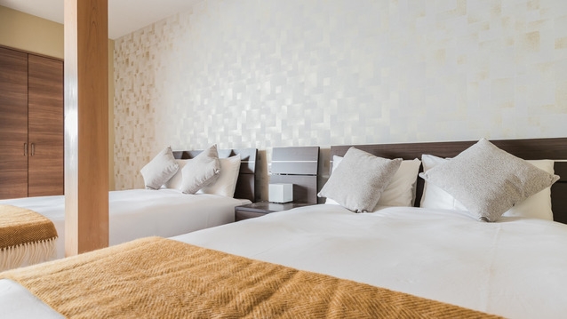 ご家族で安心してご利用いただけるお部屋です。独立洗面台、バリアフリー対応のトイレ・シャワー完備/4名様までご宿泊可能(ダブルベッド2)