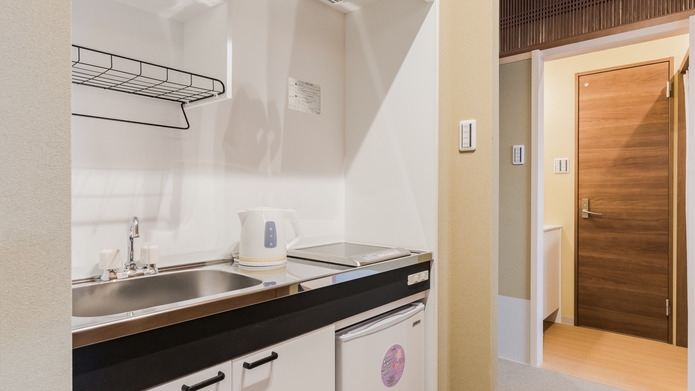 ・共用ミニキッチン(冷凍冷蔵庫・電子レンジ・ケトル、食器類)