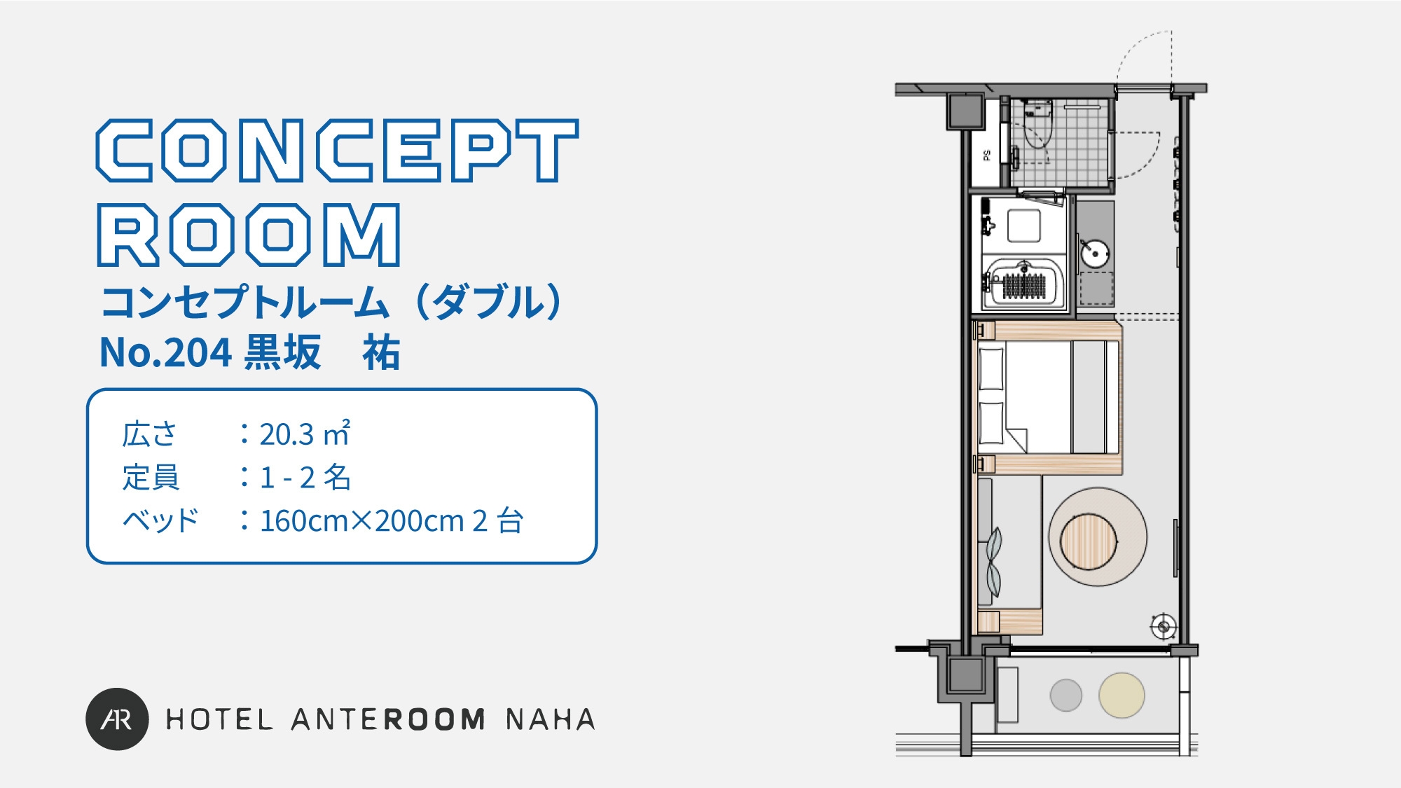 クイーンベッド1台|シャワーブース(バスタブなし)・ハーバービュー / バルコニー有<20.4平米>