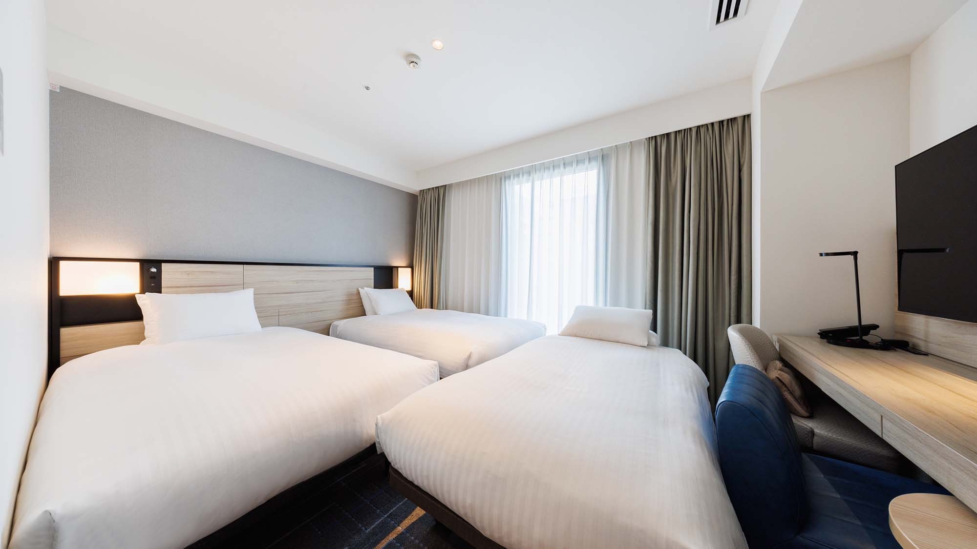 線路側に面したお部屋のみとなります。140cm幅ベッド×1台 エキストラベッド90cm幅×1台 バストイレ別 Wi-Fi接続無料 加湿機能付き空気清浄機