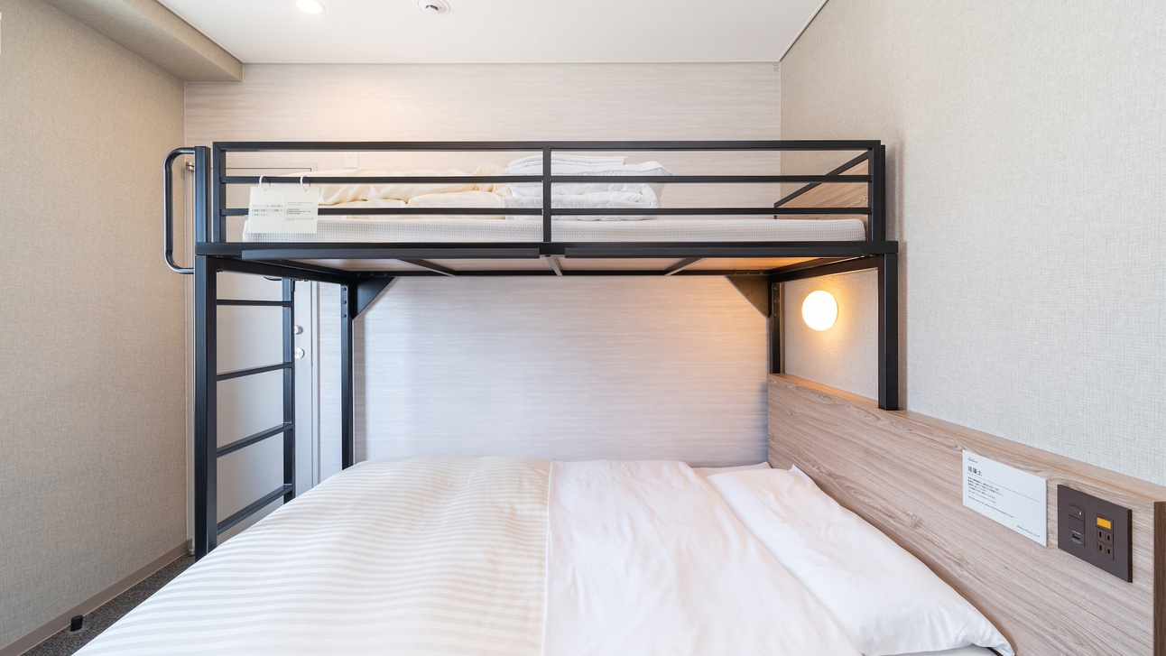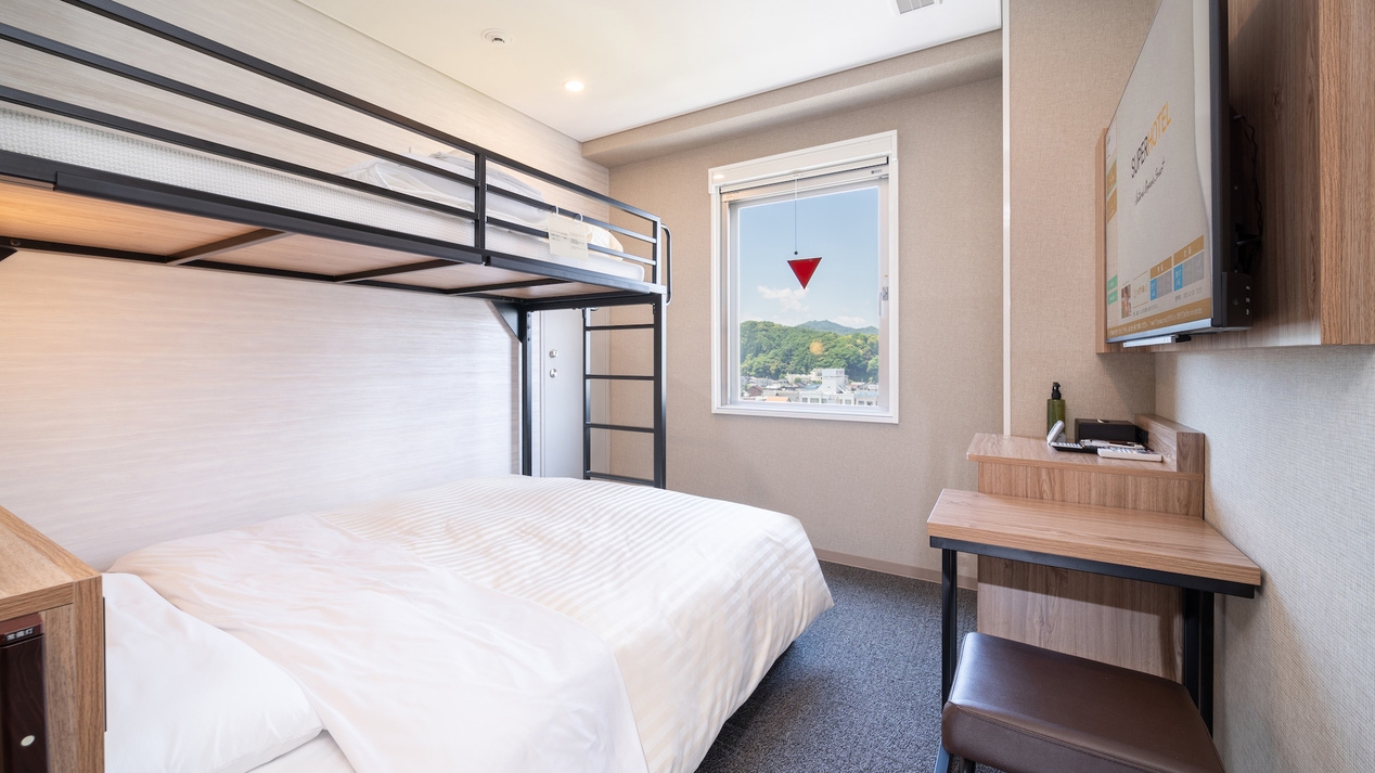 ダブルサイズのワイドベッドとお子様に人気のロフトベッド付の【スーパールーム】です。 ご家族にお勧めです。
