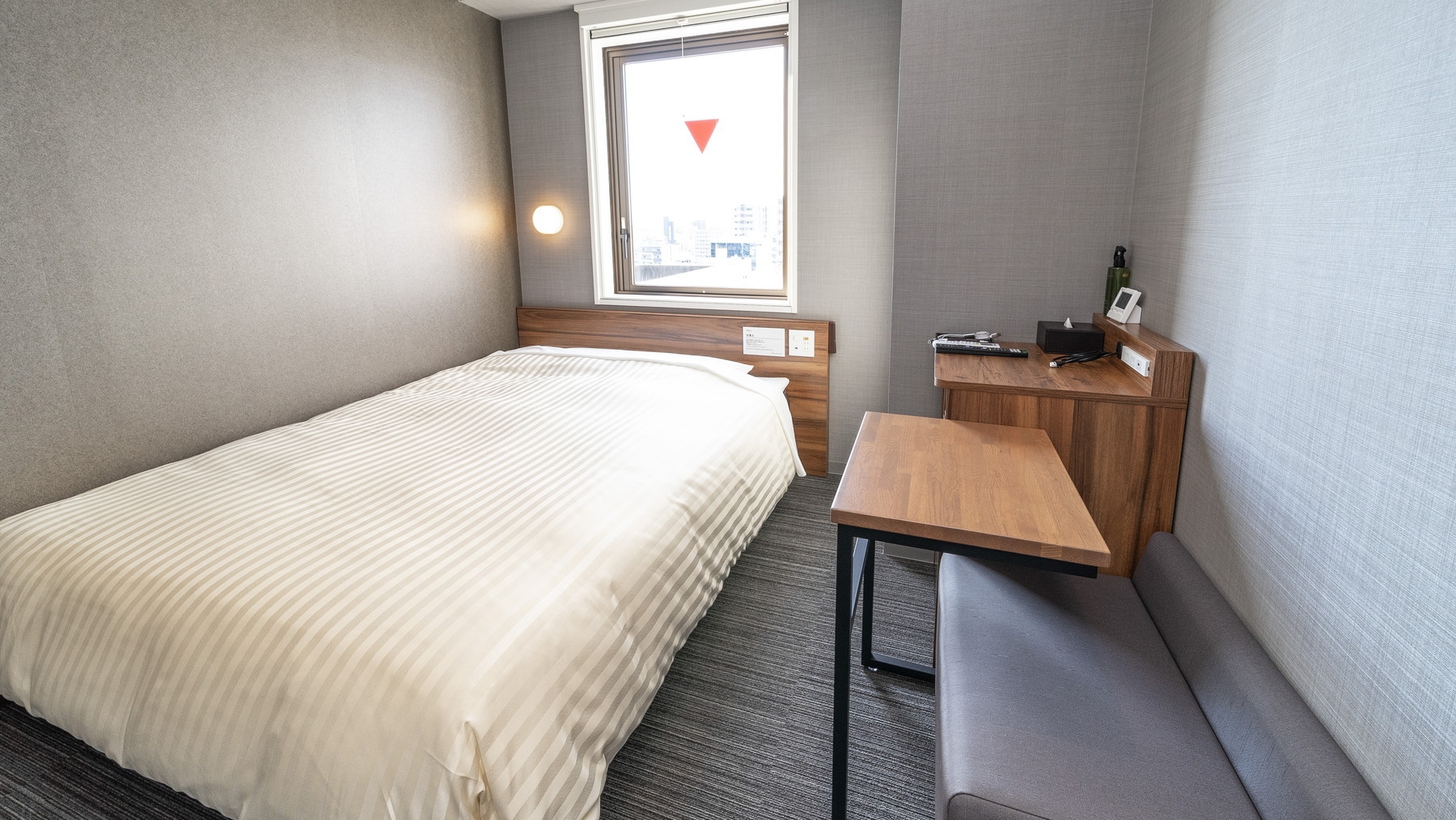 スーパーホテルで最もスタンダードなお部屋である【スタンダードルーム】です。150cm幅のダブルサイズのワイドベッドでぐっすりお休み下さい。