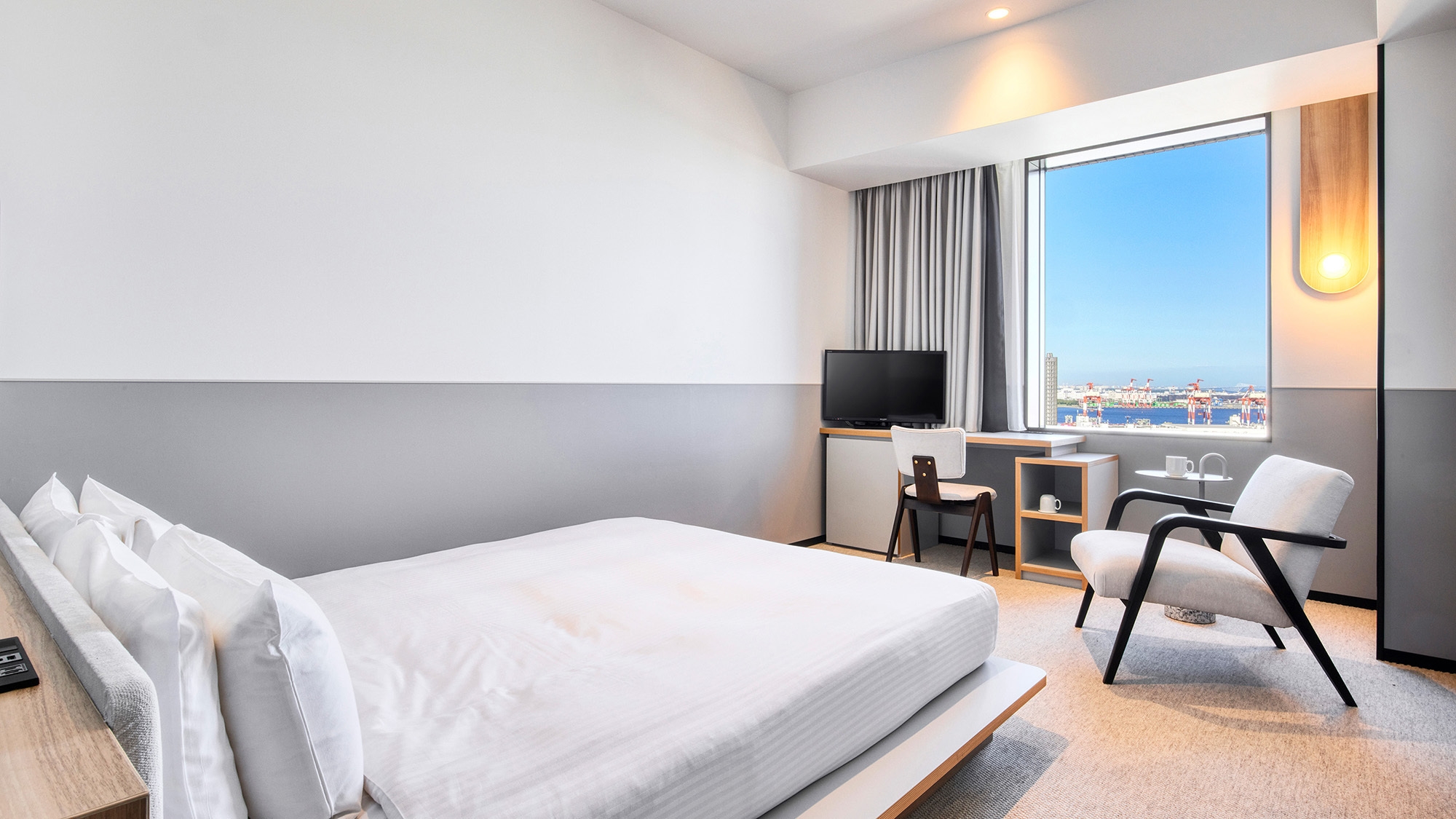 シーサイドの客室では、東京湾からのぼる朝日や港湾エリアの夜景など、時間とともに移り変わる景色をお楽しみいただけます。