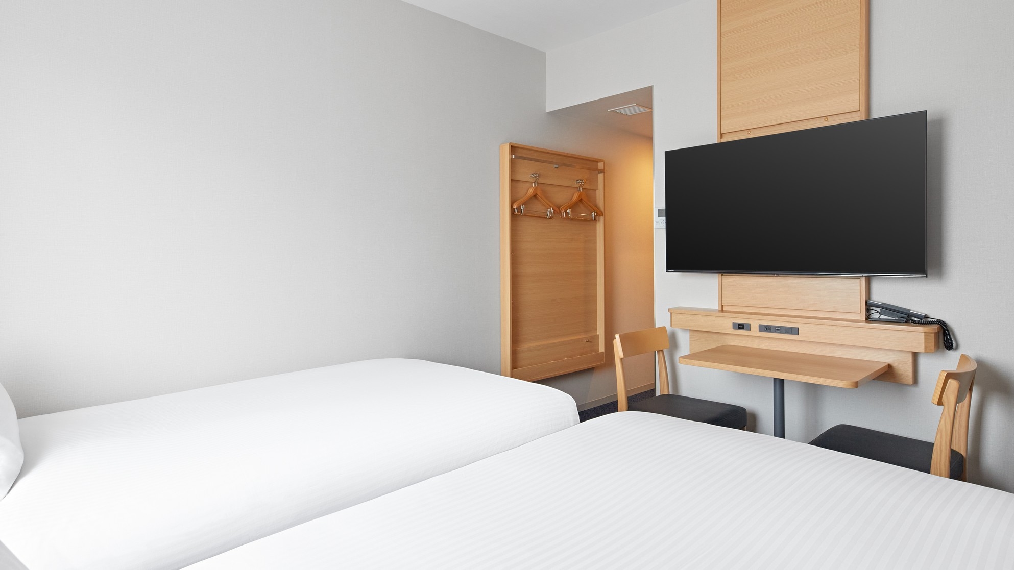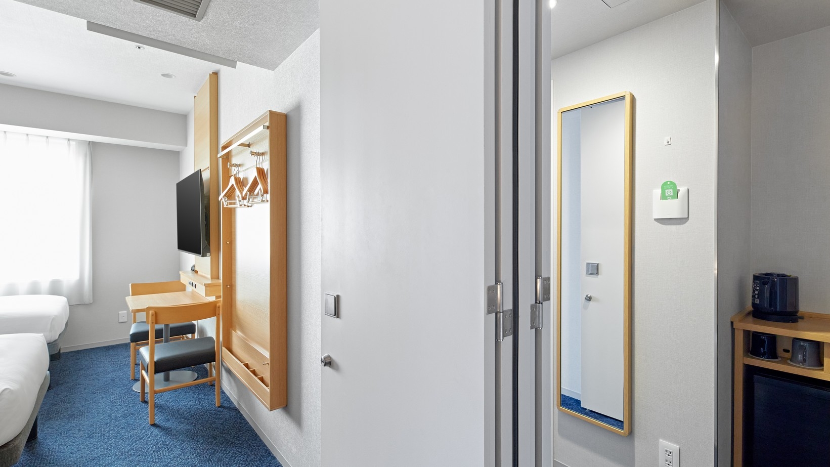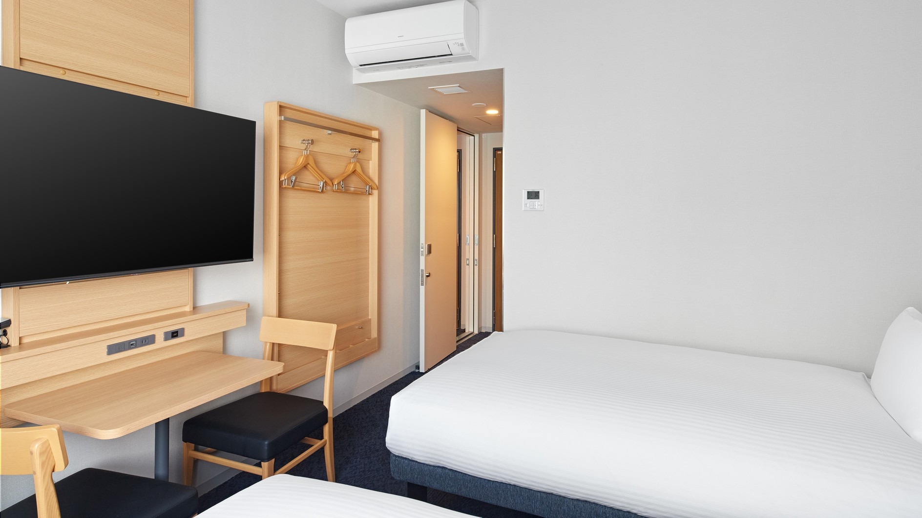 客室内行き来可能なツインルームとダブルルーム1室ずつ 全室禁煙 全室WI−FI無料 全館浄水システム採用 スマートTV 加湿機能付空気清浄機