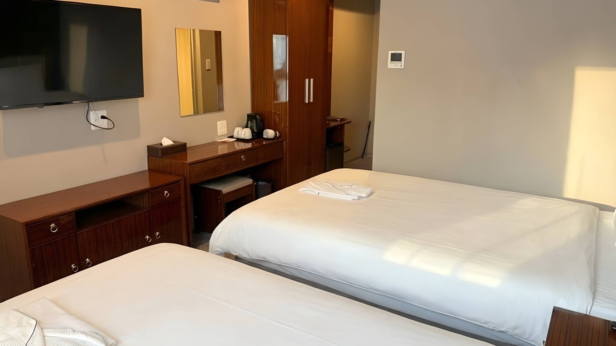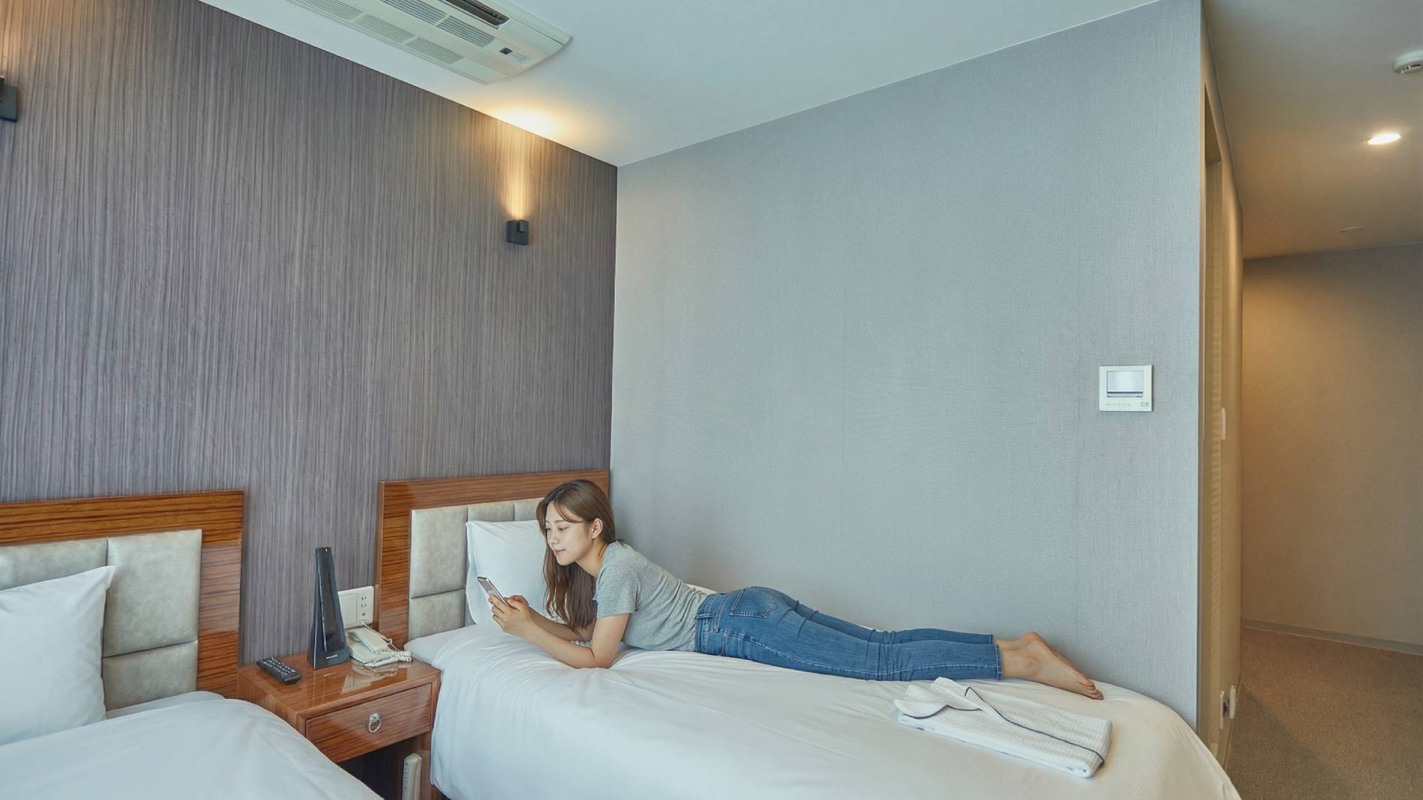 ■広さ13.5平米 ■100cmシングルベッド×2台 ■シャワールーム・トイレ付 ■アメニティ:シャンプー/リンス/ボディソープ/スリッパ/タオル/バスタオル