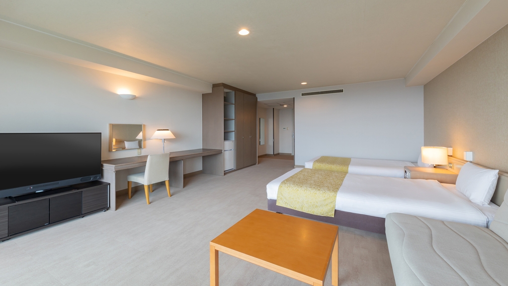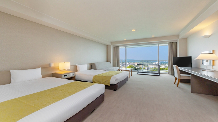 39平米のゆったりしたツインルームにデイベッドを使用して最大で4名様までご宿泊可能です。 ファミリーやグループでのご利用にもおすすめです。