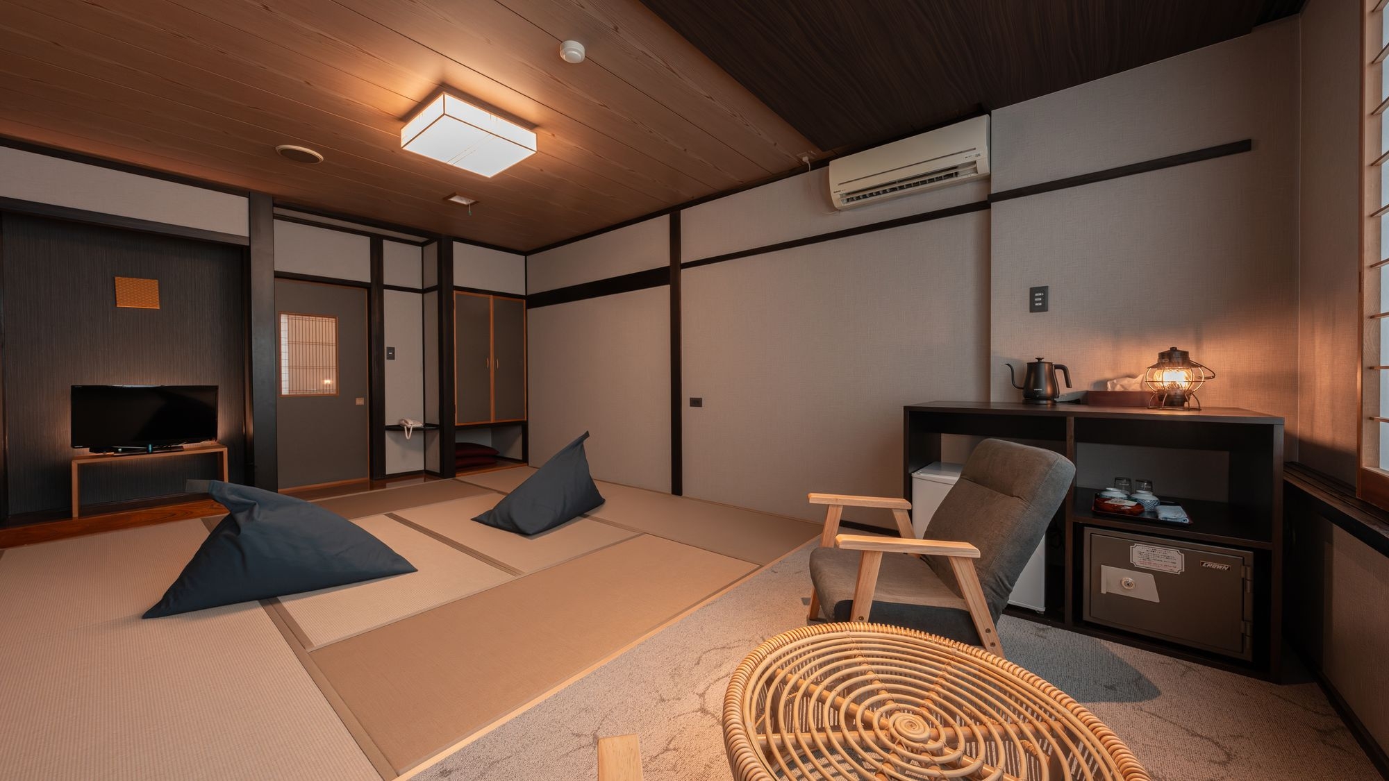 リニューアルルーム!10+4.5畳。冷暖房完備、ウォシュレット、ヘアードライヤー完備。喫煙が発覚した場合は損害費を請求させていただきます。全室Wi-Fi利用可能