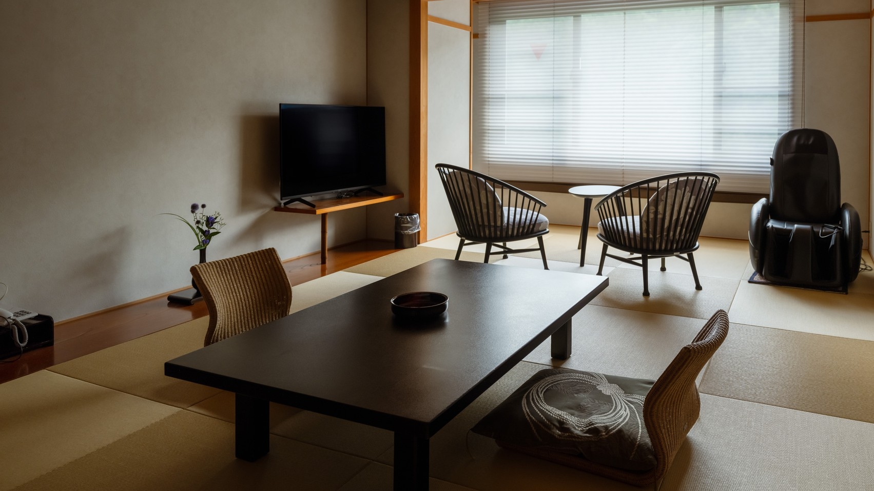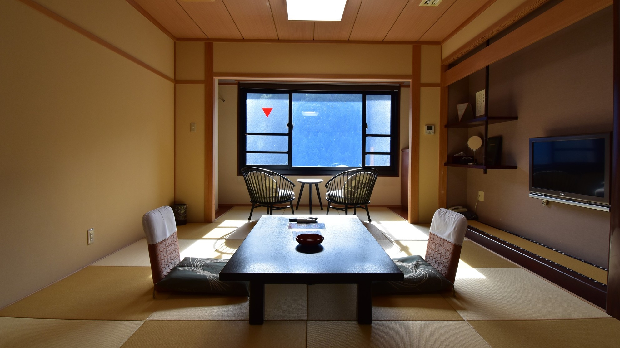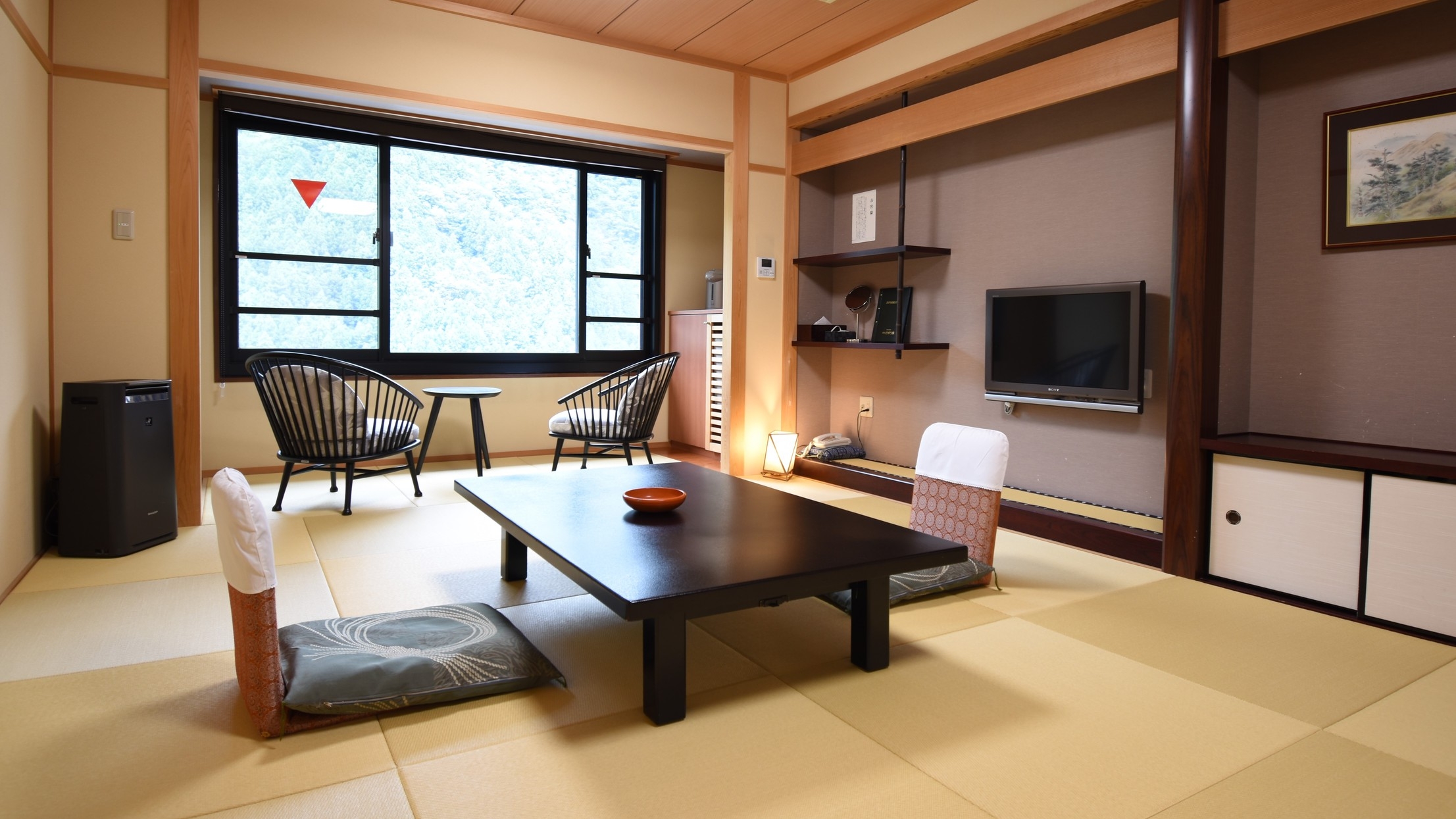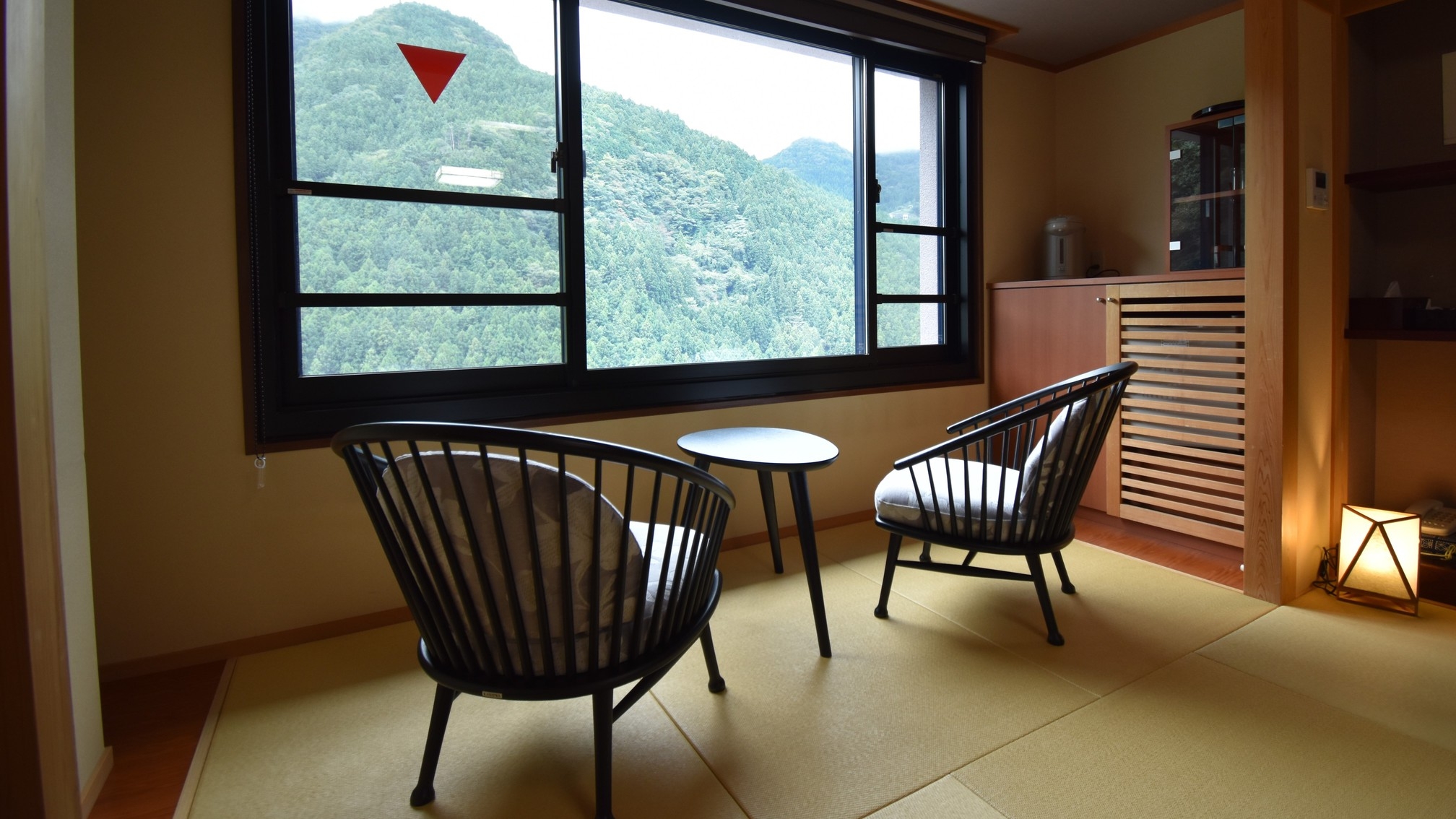 和室12畳タイプに祖谷の青石を使った本格的な露天風呂の付いた客室です。やすらぎのひとときを大切な方とお過ごしください。