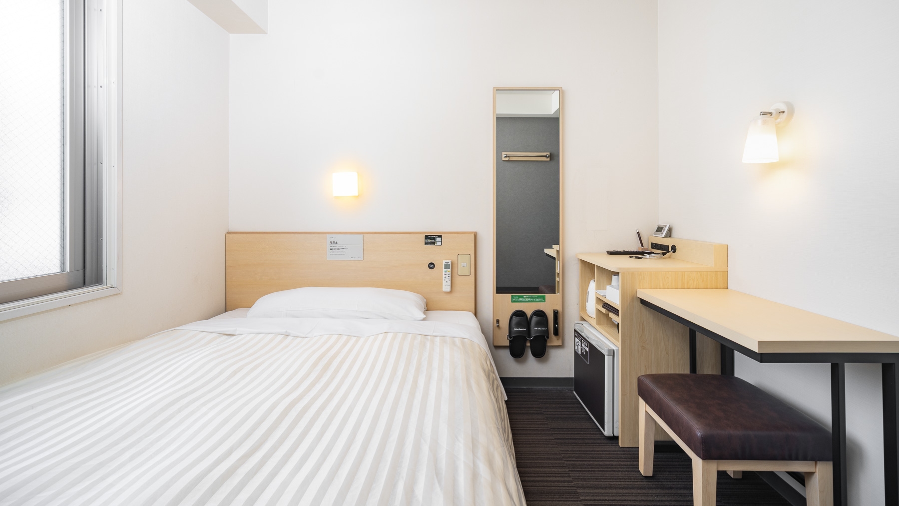 140cm幅のダブルベッド+広々デスクの【エクストラルーム】です。 広々デスクで仕事や作業がしやすいお部屋です。