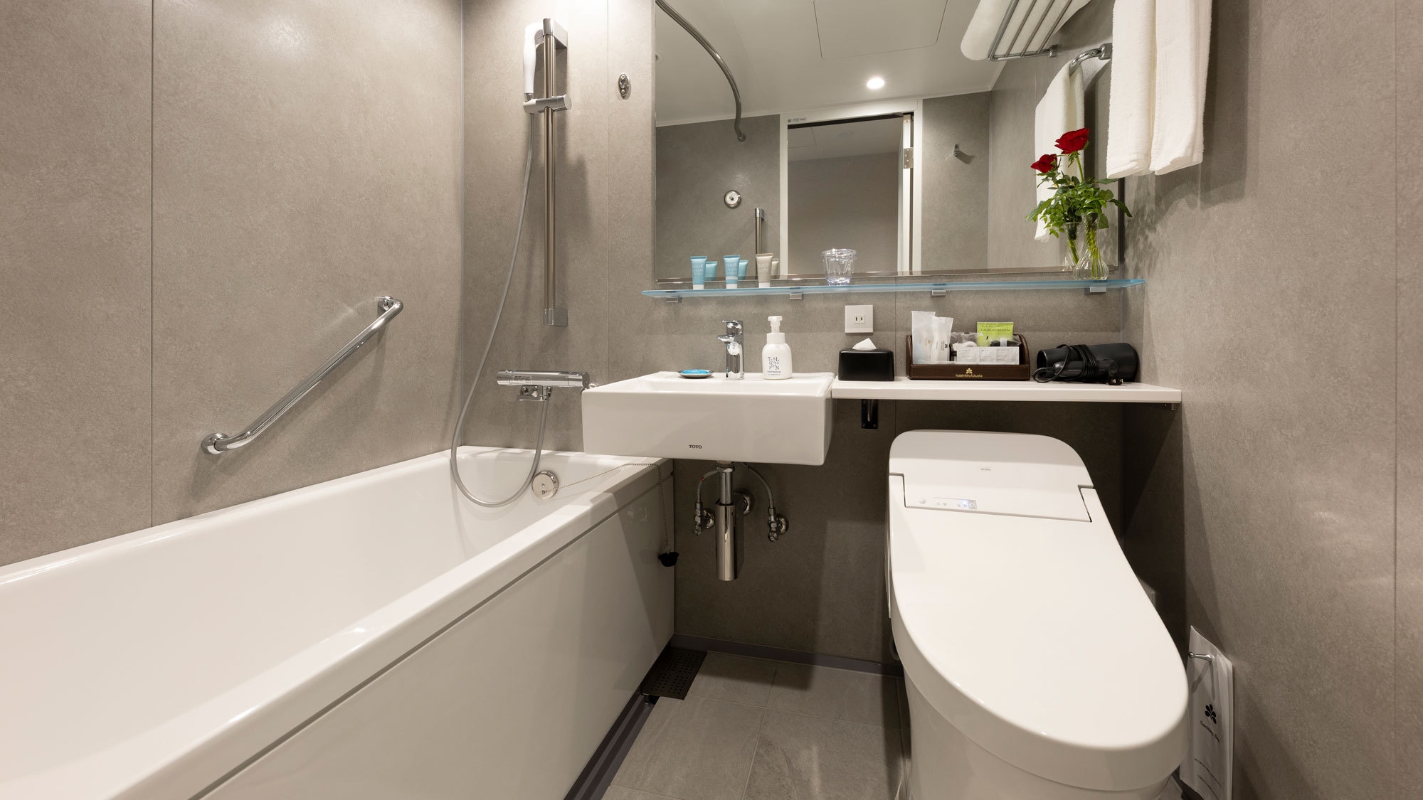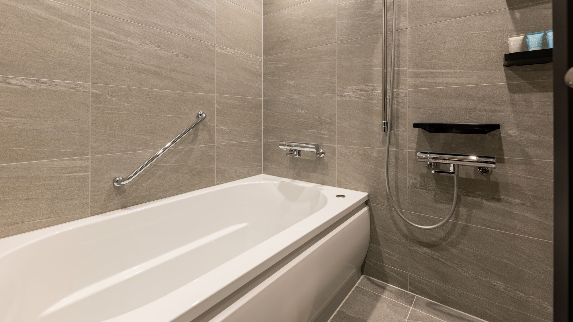 2025年9月に水回りをバス・トイレ別のお部屋に全面リニューアル。 シモンズ社のワイドキングベッド(幅2000mm)を1台配置。